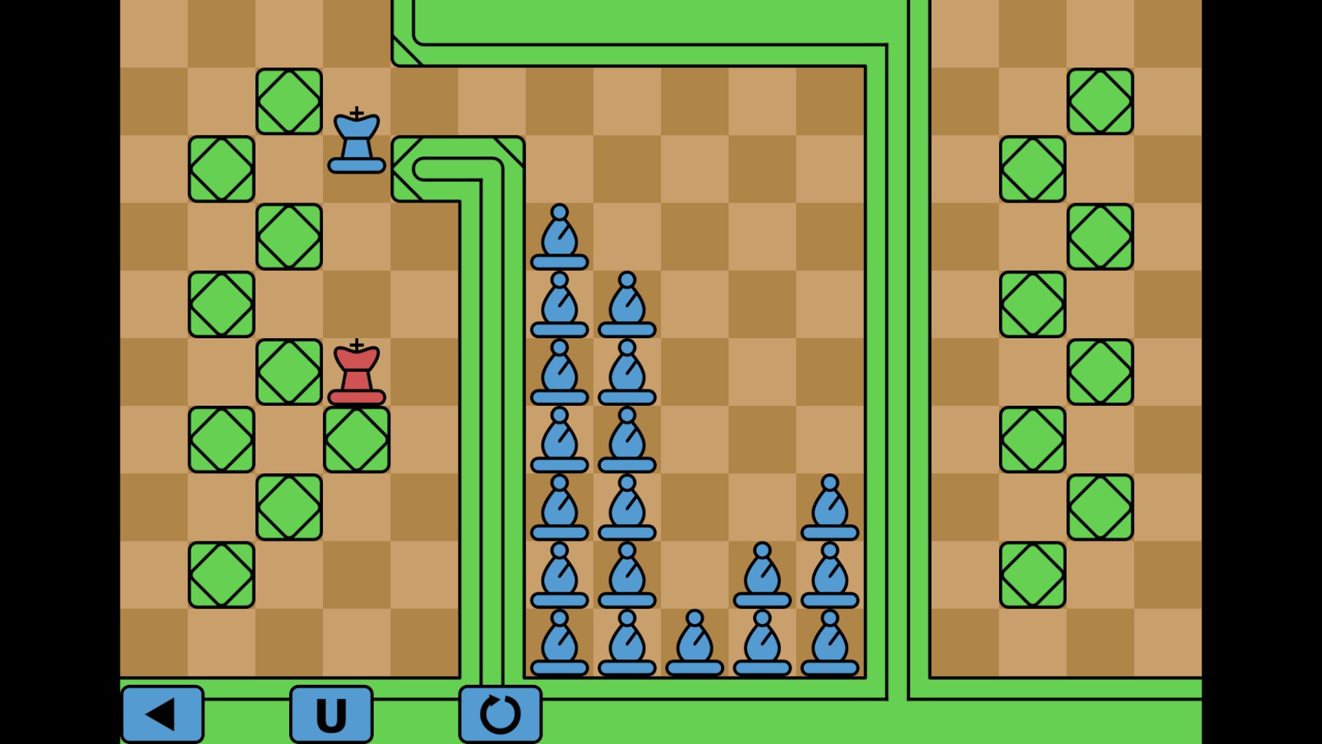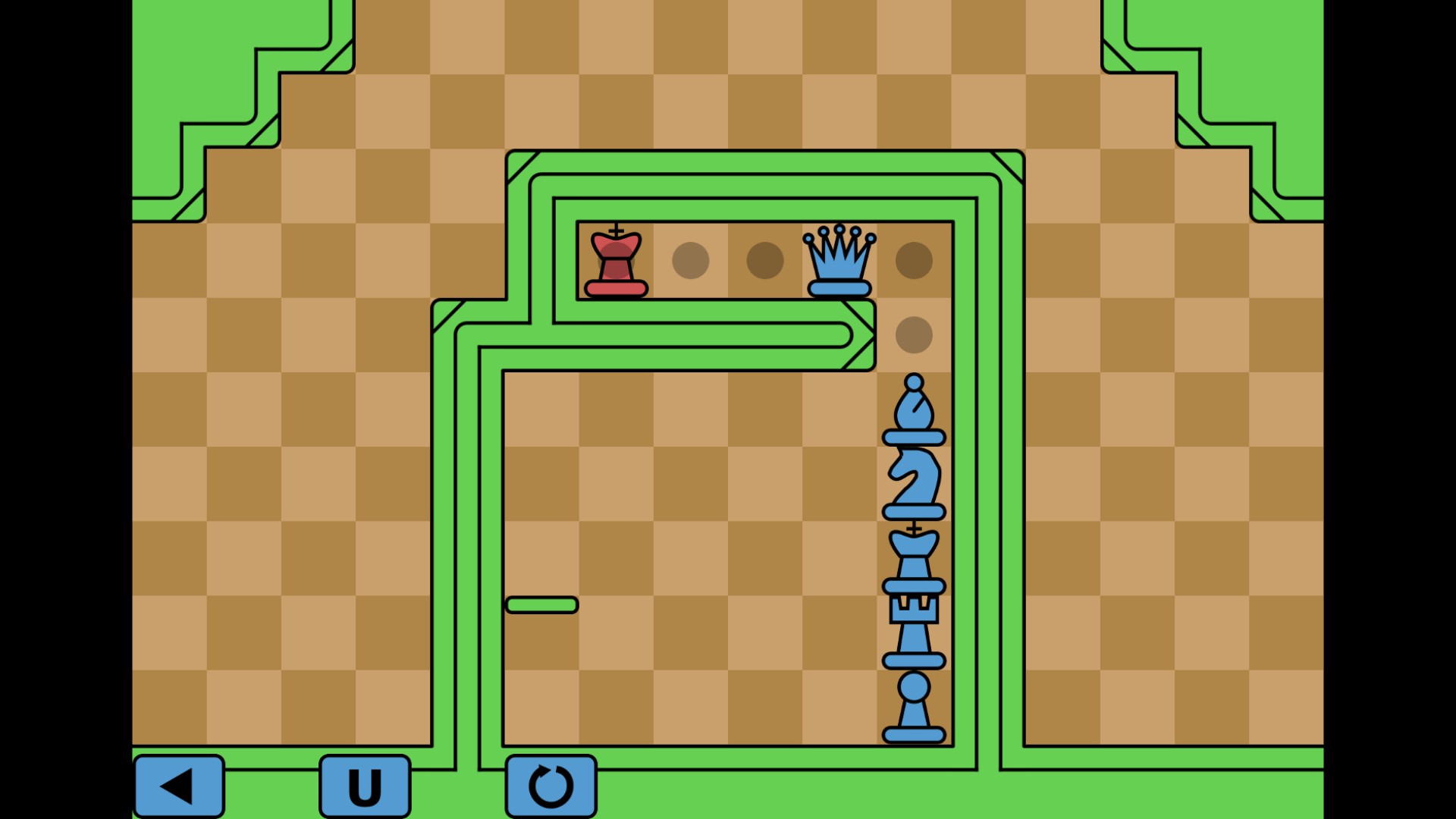 Chessformer is a grid-based puzzle platformer with Chess pieces. The goal in each level is to capture the opposing king, who is lazy and never moves, so don't worry about losing any pieces.