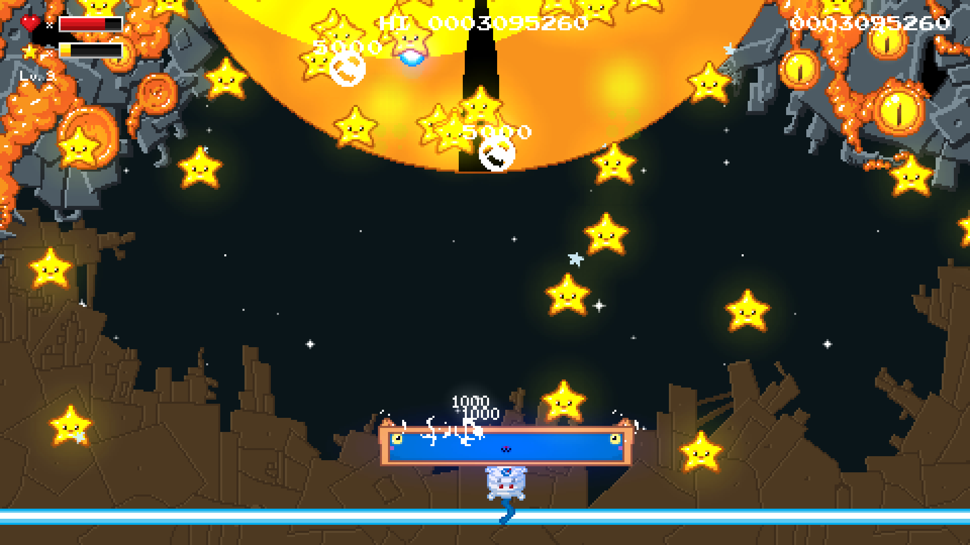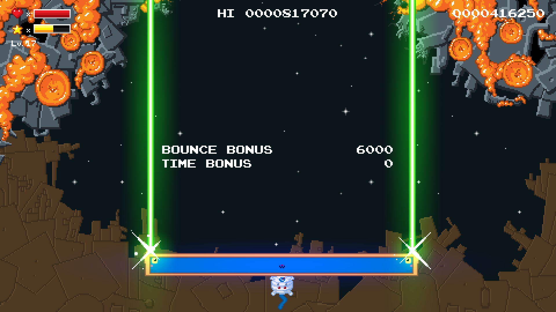 A twin stick, fixed shooter, bonus hell, pixel art, shoot 'em up. Aliens have invaded and you, a blue housecat with a stretchy head, are, of course, our last hope. Fight the aliens on earth, under the ocean and in space in this risk/reward based fixed shooter inspired by old school shoot 'em ups.