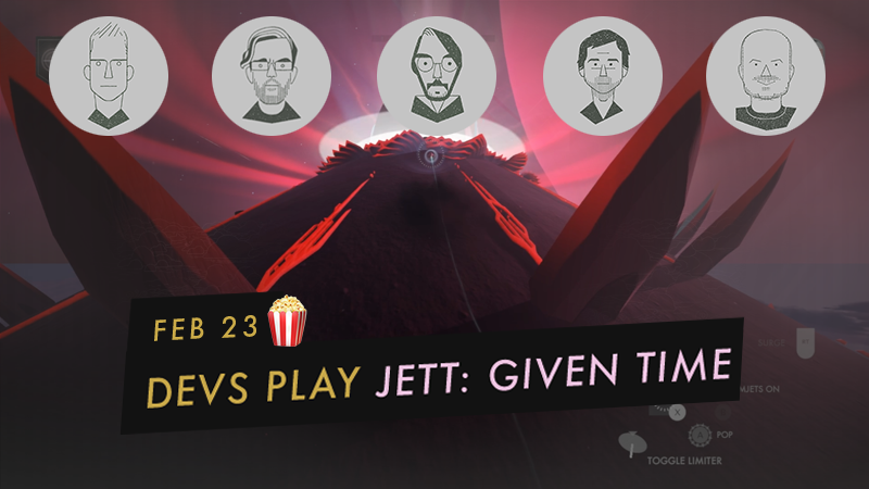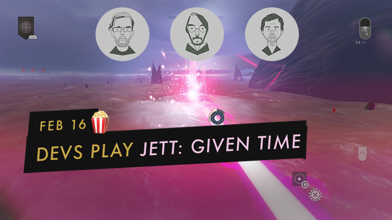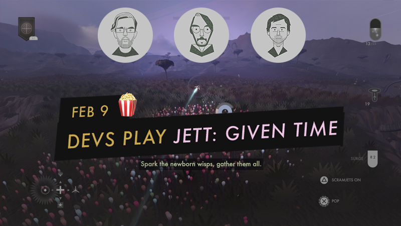 Oh, and you've arisen and are playing Given Time, take note: on this February 9th livestream, Richard and Zack will be starting in broad free-roaming mid-section of Given Time, poking at puzzles, getting in and out of JETT dev rabbit hole conversations. This section is narratively quite sparse, so there's a low risk of spoilers. You're probably safe to watch the stream and listen in, no matter what level of JETT-head you may be be, even if you haven't cracked into The Far Shore.