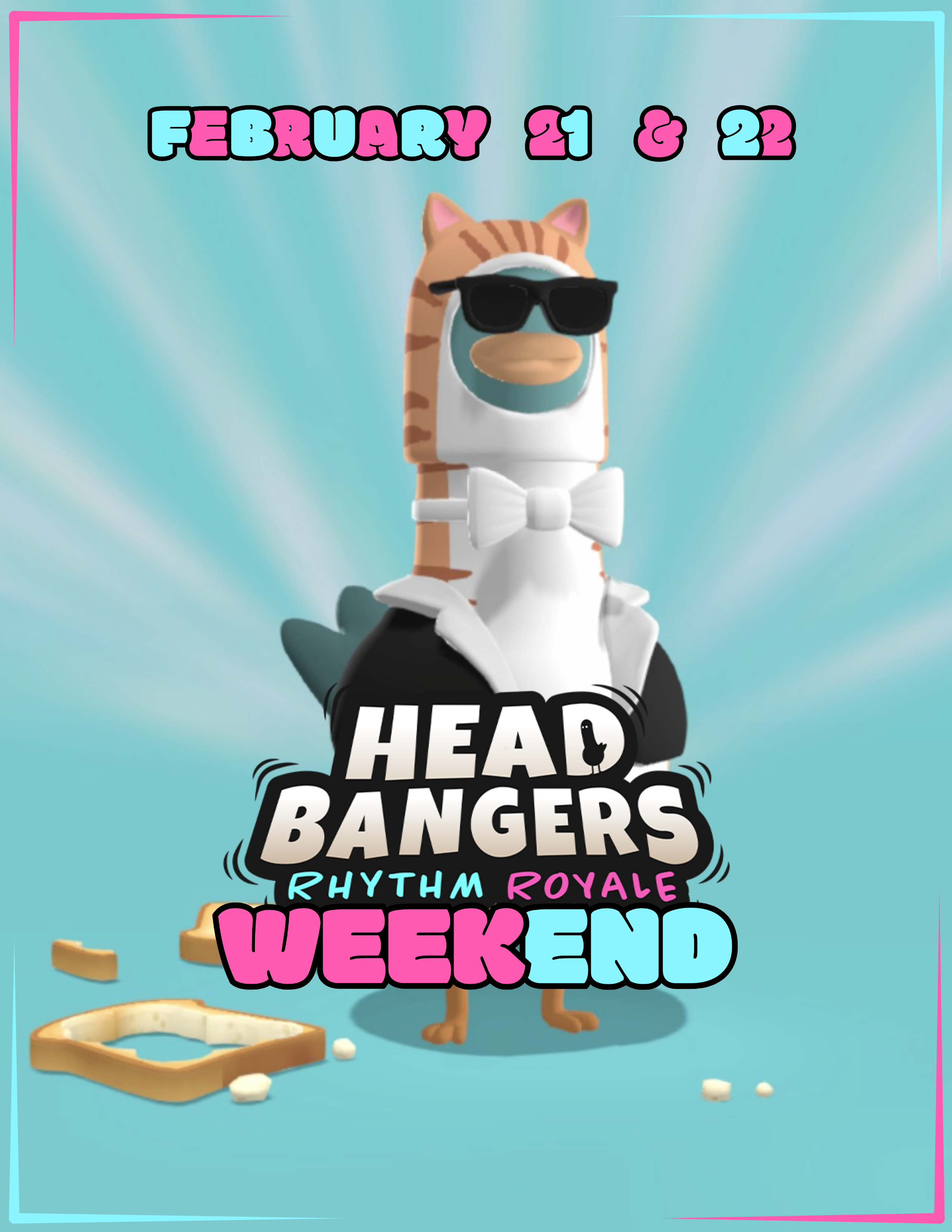 Headbangers is a light-hearted, Rhythm Battle Royale Game where you and 29 other Pigeons compete against each other, all to complete your quest of claiming the title of Master Headbanger!