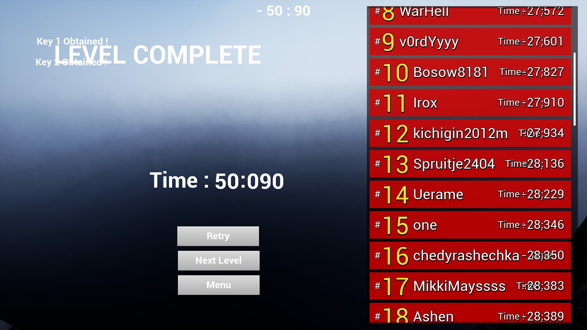 KTGAME is a first person speedrun game. Doing the best time will be your goal to be part of the top of the ranking.