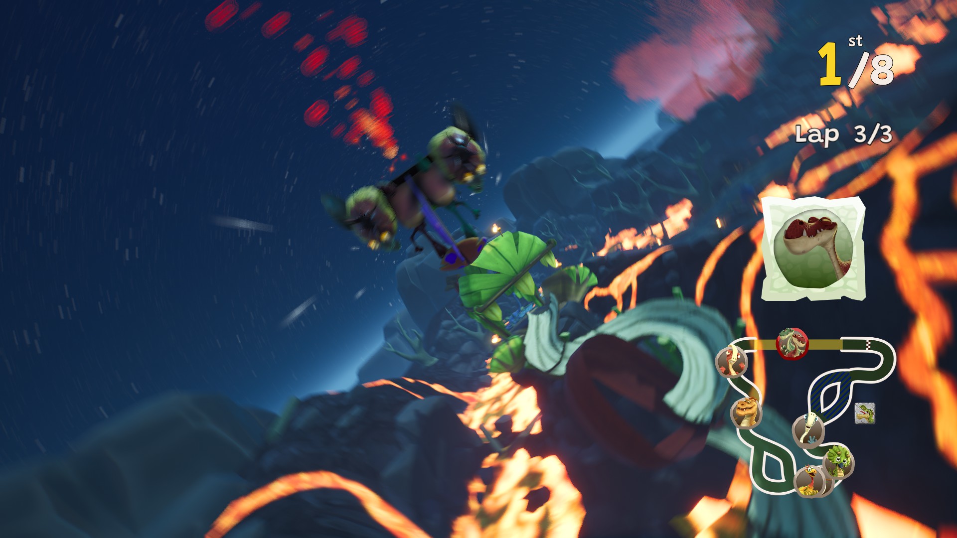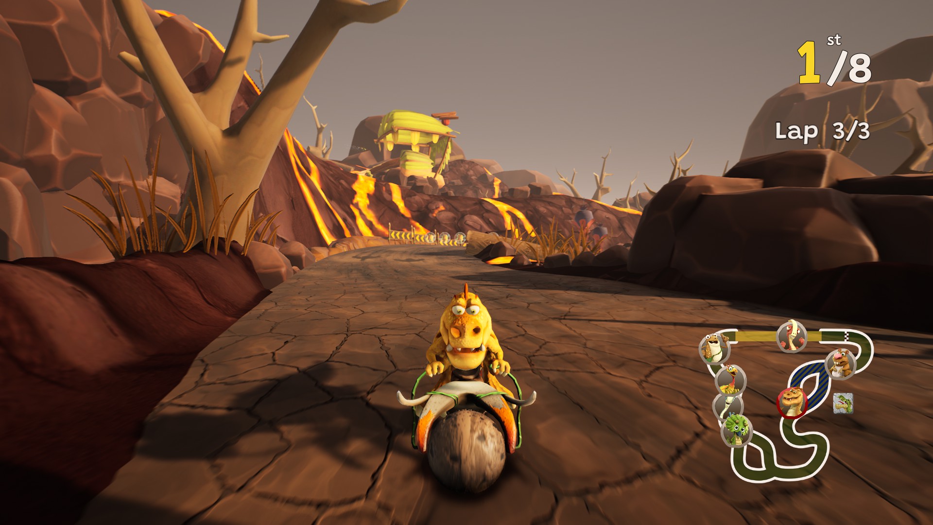 Race around Cretacia as your favorite dino in a prehistoric kart championship almost as big as Gigantosaurus’s appetite!