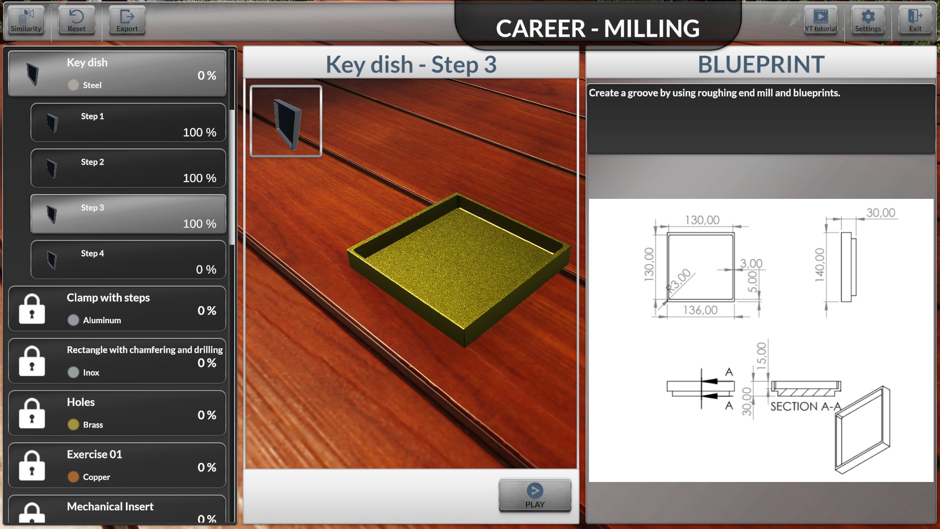 Milling machine simulator will inspire novices and experts alike. Realistic physics and movements allow you to familiarize yourself with the machine in a 3D workshop setting. Enjoy playing around, learning and prototyping in Free milling mode. Or challenge yourself in Career mode.