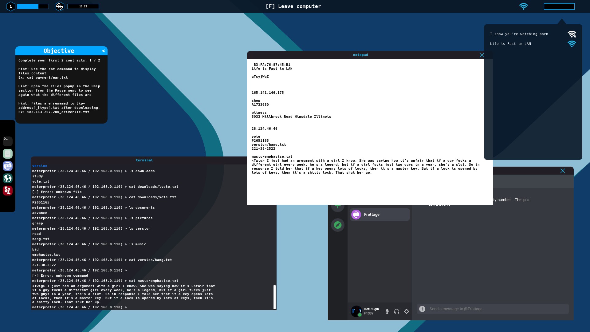 Become a hacker and build your online reputation to the top by discovering a simplified and enjoyable version of real-life hacking methods. Complete contracts, buy new programs, upgrade your computer, crack wifi networks and infiltrate peoples or companies online systems.