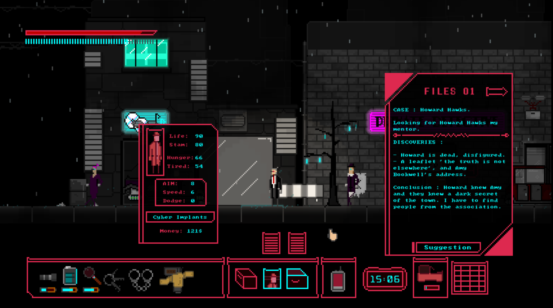A funny and dramatic game telling the story of a detective. NOIR themed with a cyberpunk background with elements of Lovecraftian horror story.