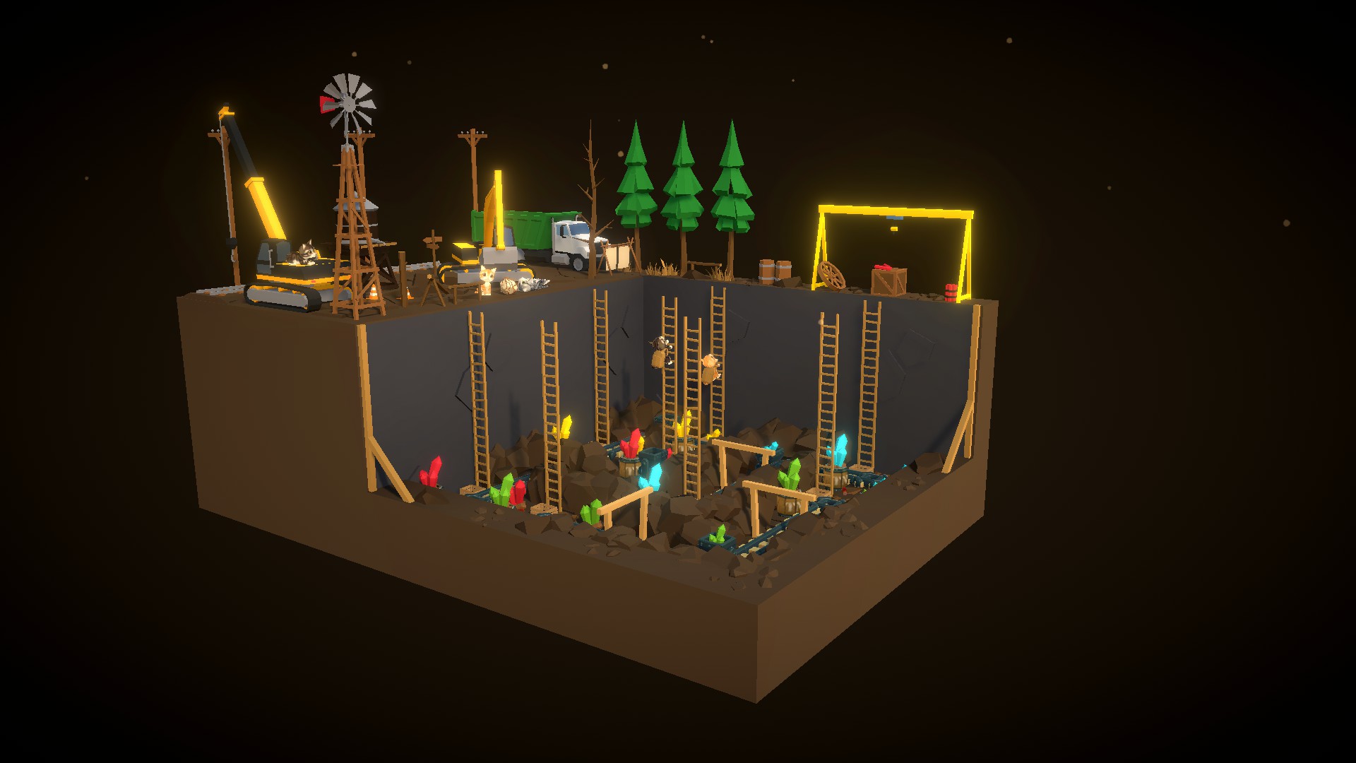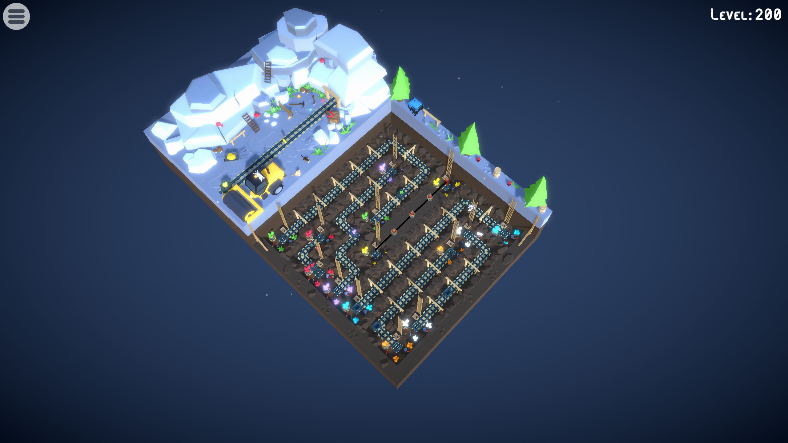 Mining Cats is a logic puzzle that involves blasting rocks and creating paths that connect mines of gemstones of the same color.