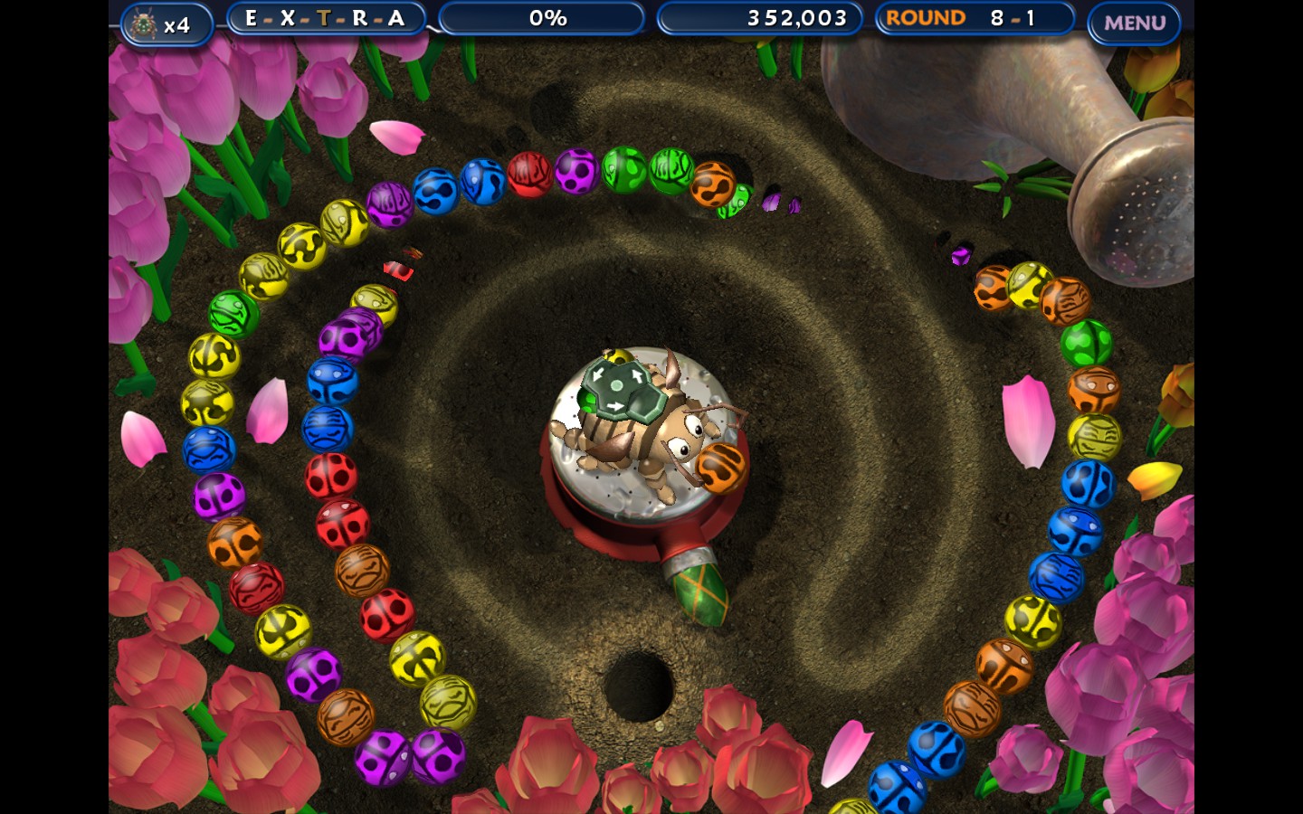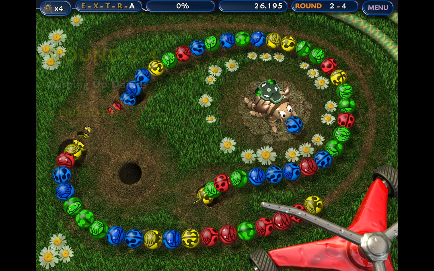 Save your backyard buddies from rolling into the Black Bug Empire's underground lair. By launching colored bugs from your back with precise timing you can free more bugs with matching color, but you have to act fast and save them all before you run out of time.