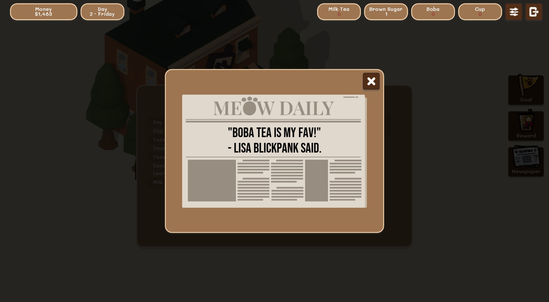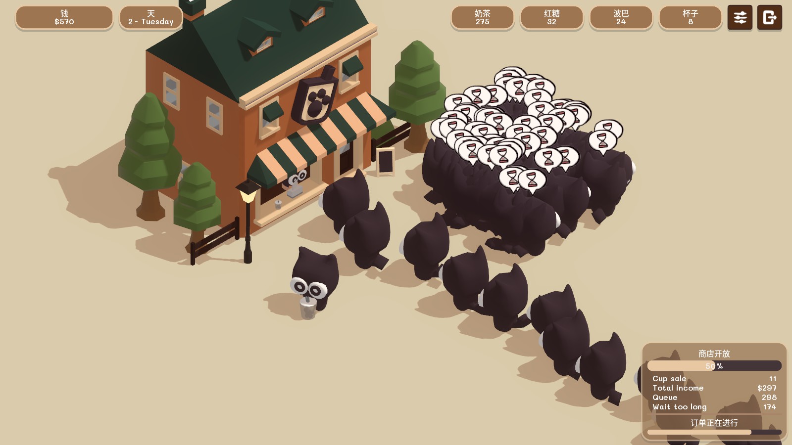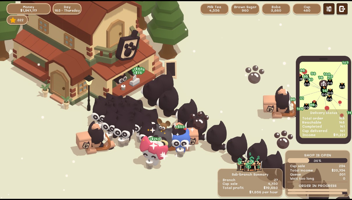 Boba Tea shop simulator. Manage recipe, stock and customer satisfaction.