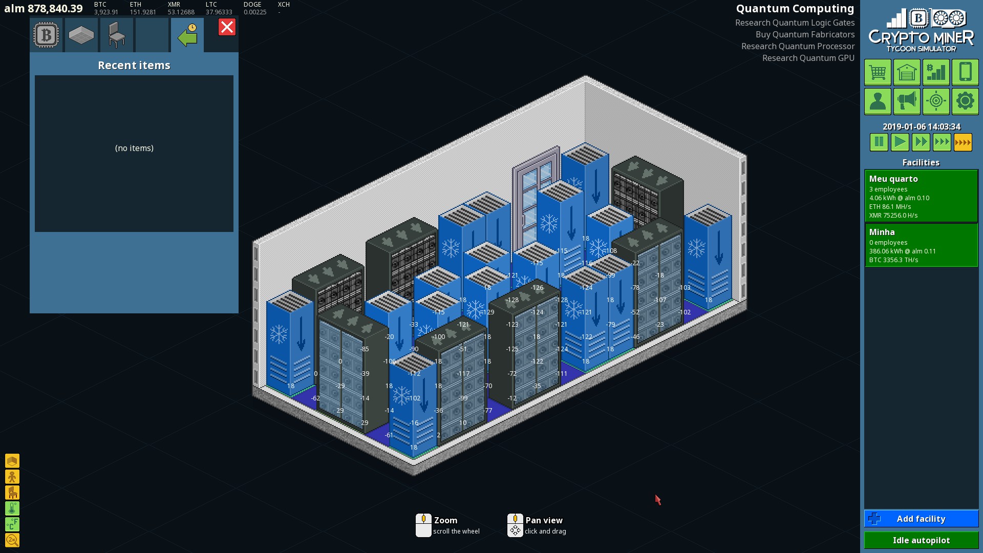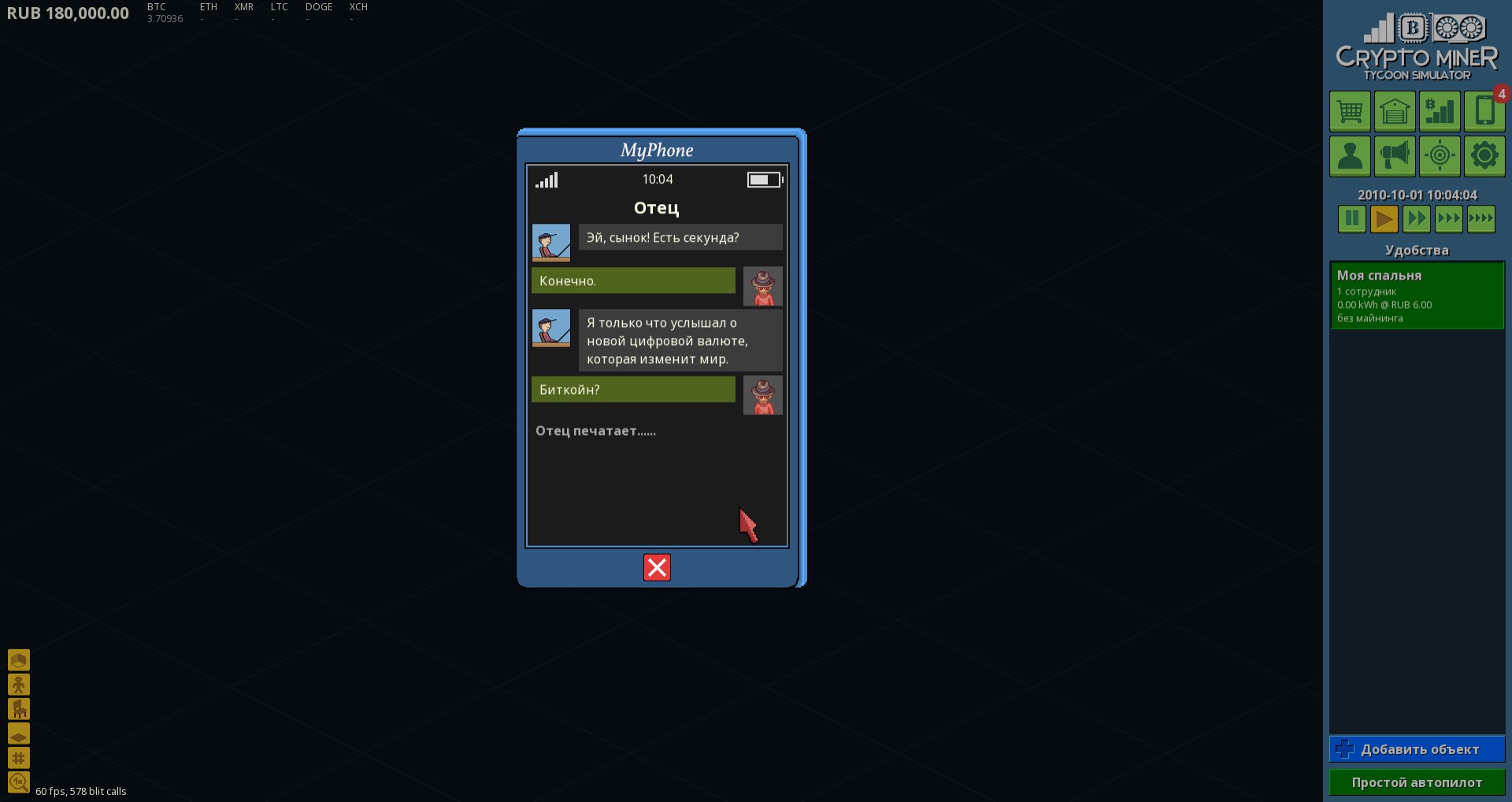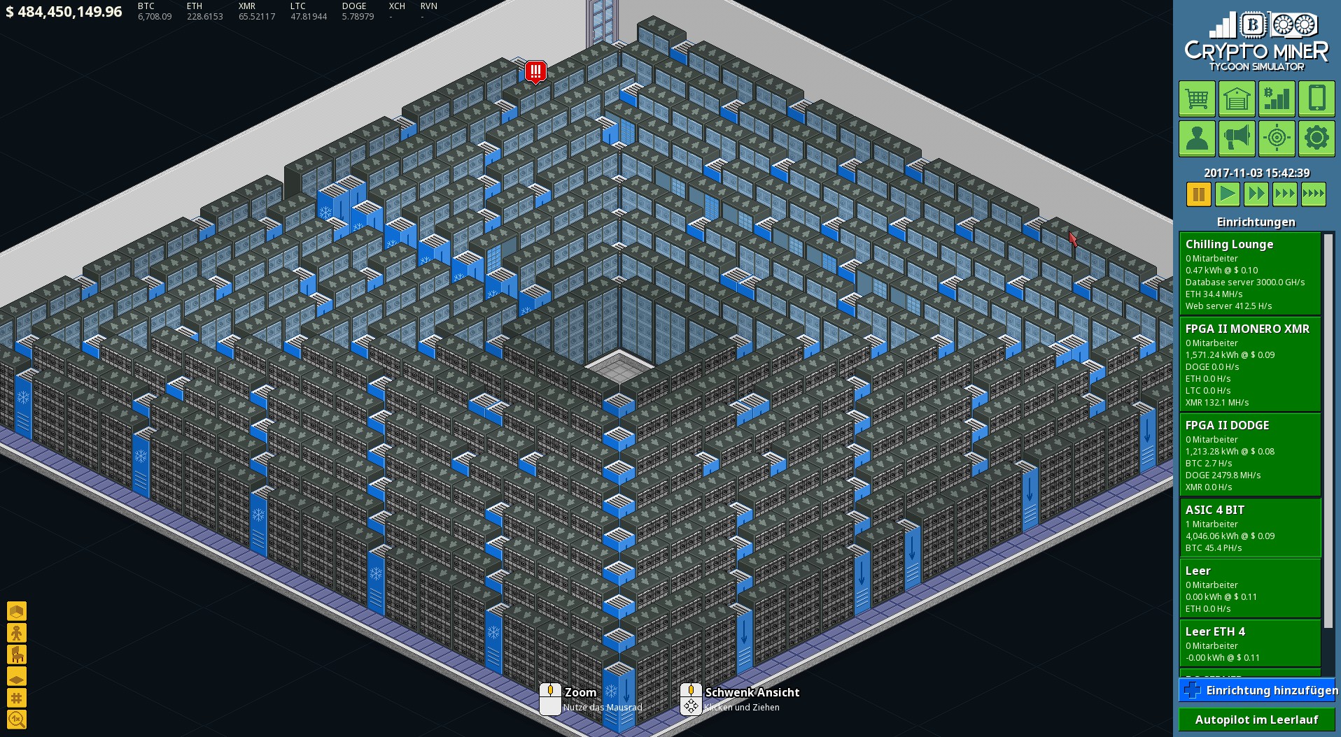 Build rigs to mine Bitcoin, Ethereum and other cryptocurrency. Trade on the market to grow wealth. Expand your business into new offices. Hire skilled employees and assign tasks. Use cash from your mega farms to research new technologies and reach the goal of each scenario.