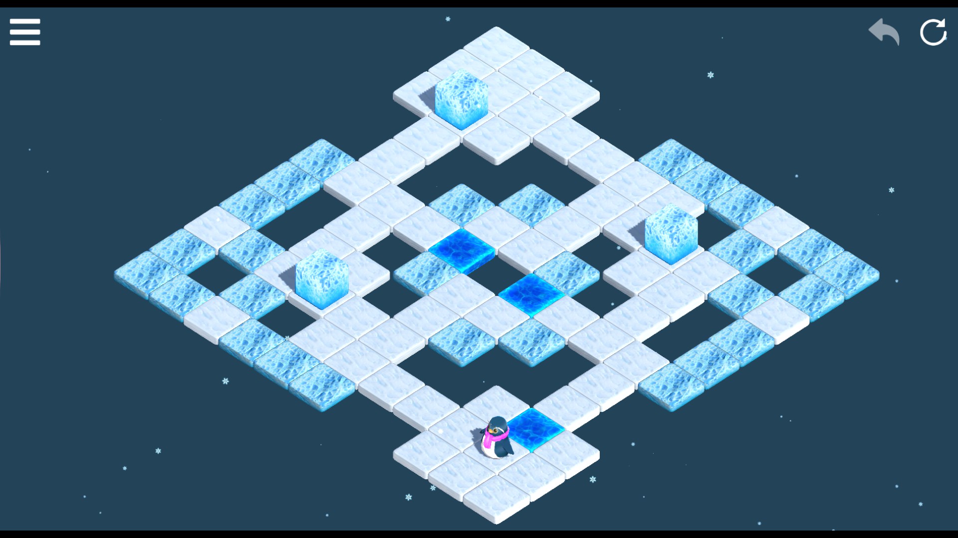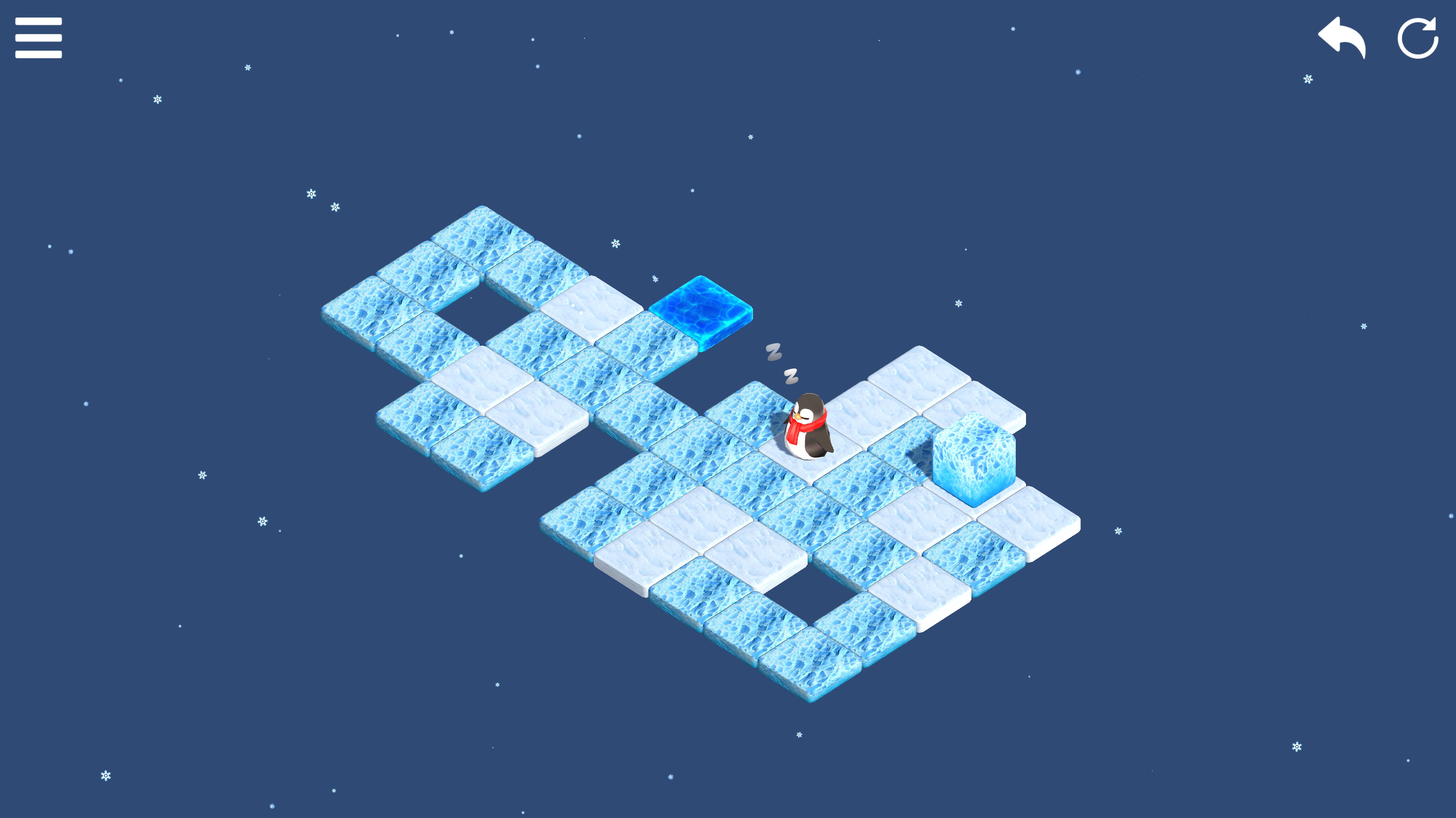 SokoWinter is a sokoban game with slippery floors. You will have the opportunity to get to know one of the curious hobbies of four stylish penguins: pushing large ice cubes. Why do they like this activity so much? Well, that we don't know, as our knowledge of penguins is limited...