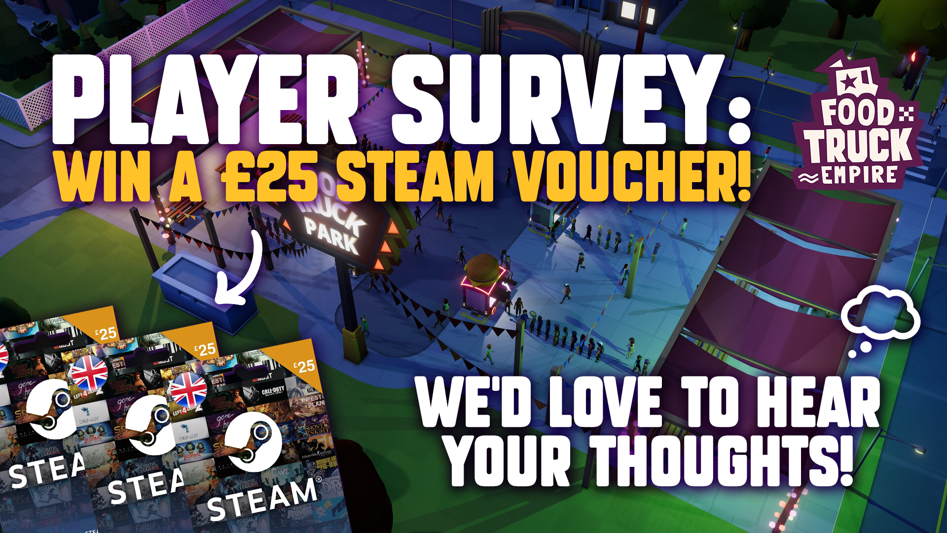 If you'd like to help shape the development of Food Truck Empire while also grabbing the chance to win a Steam voucher, you can access the survey here: