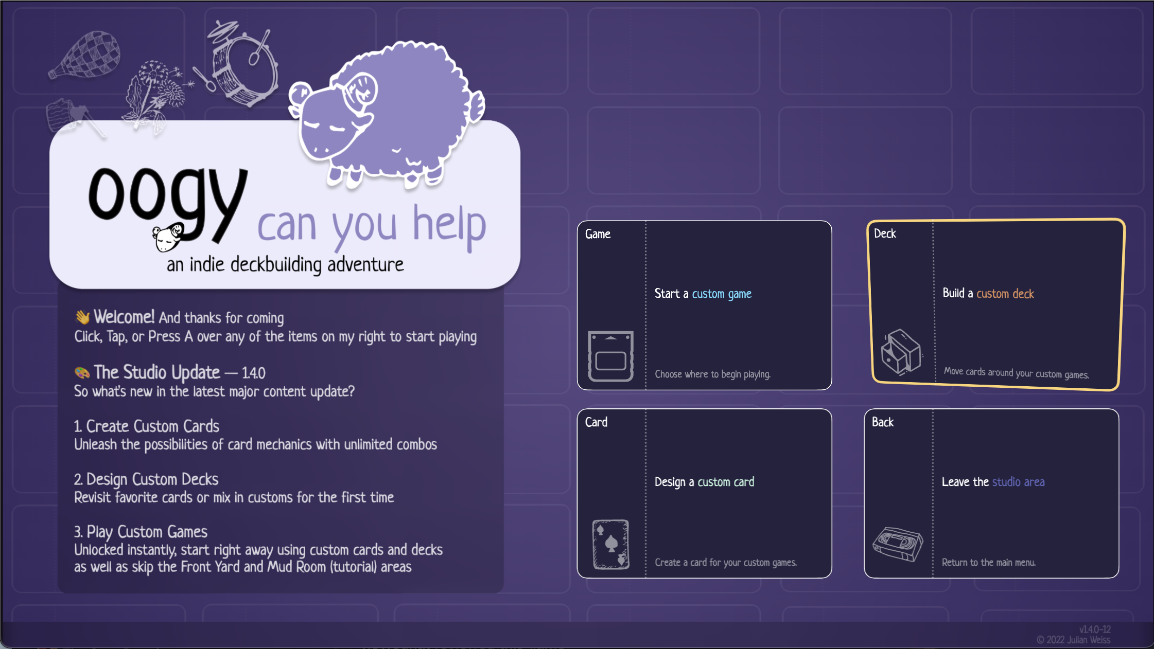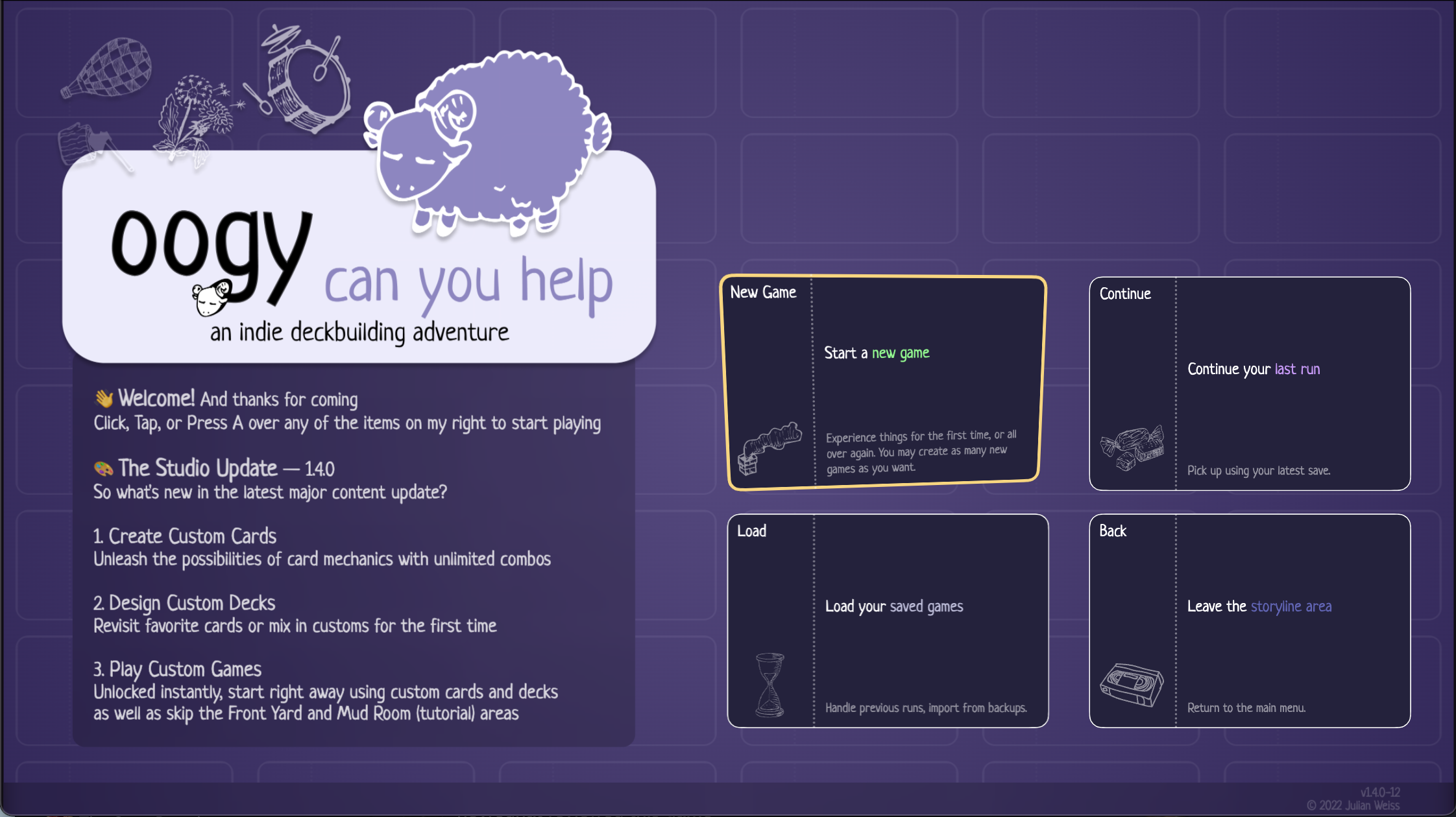 You fall through the snow, and become… a deckbuilding sheep!? Collect new mechanics. Uncover dark mysteries. Make new friends in this musical indie adventure.