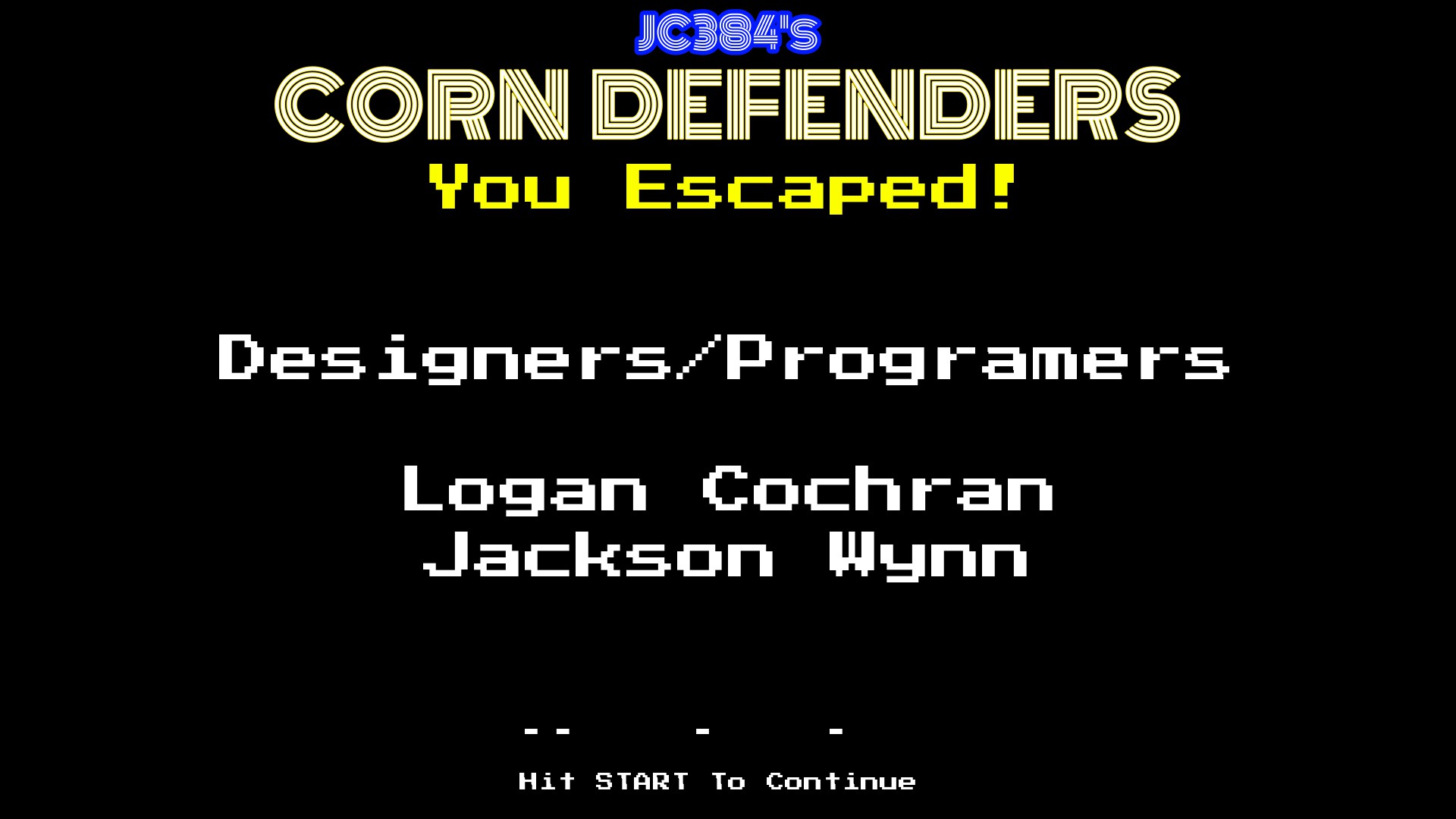 A modern game inspired by many popular 1980s arcade games that depicts a student locked inside of a school. You will need to trade for and collect corn to escape. You will also need to run away from Dr.