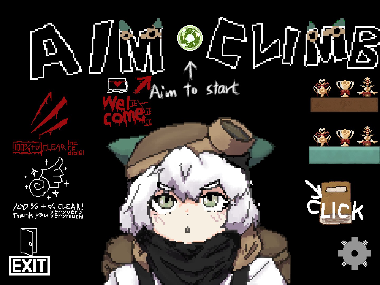 "AIM" × "Climbing Game" "Aim Climb" is a HARDCORE game in which you use your "Aiming skill" to climb to the top and reach the summit. There is also a difficulty level for players who are not used to using mouse.