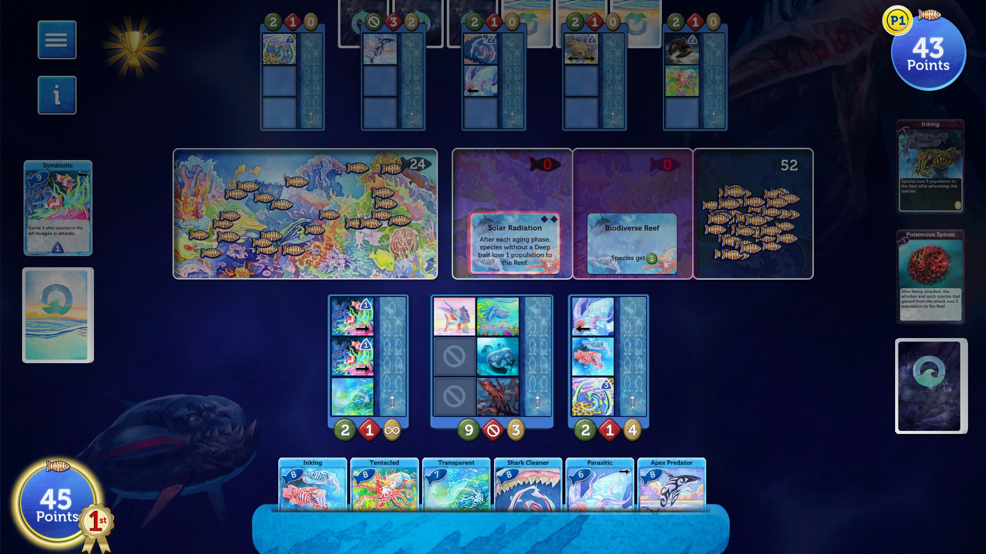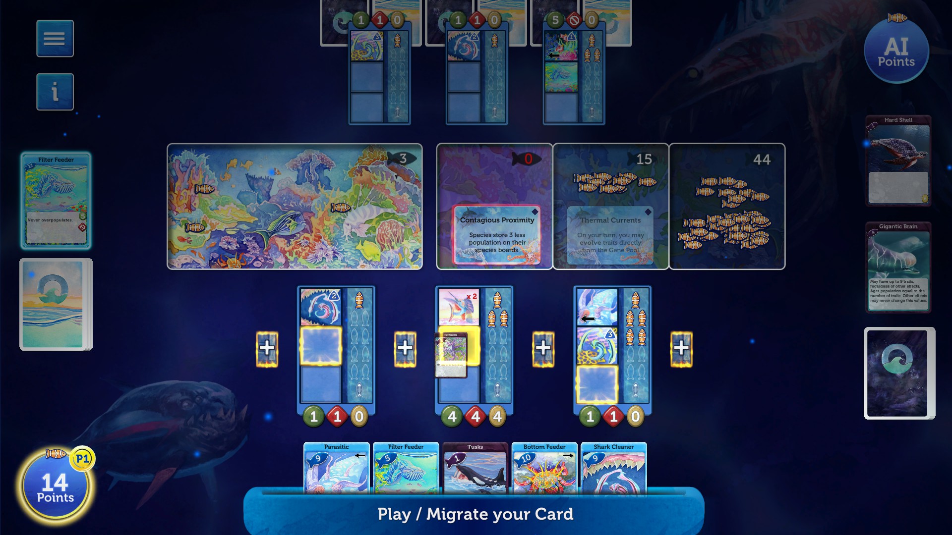 Adapt your Species to survive and thrive in the Oceans depths in this turn-based strategy game based on the hit board game Oceans.