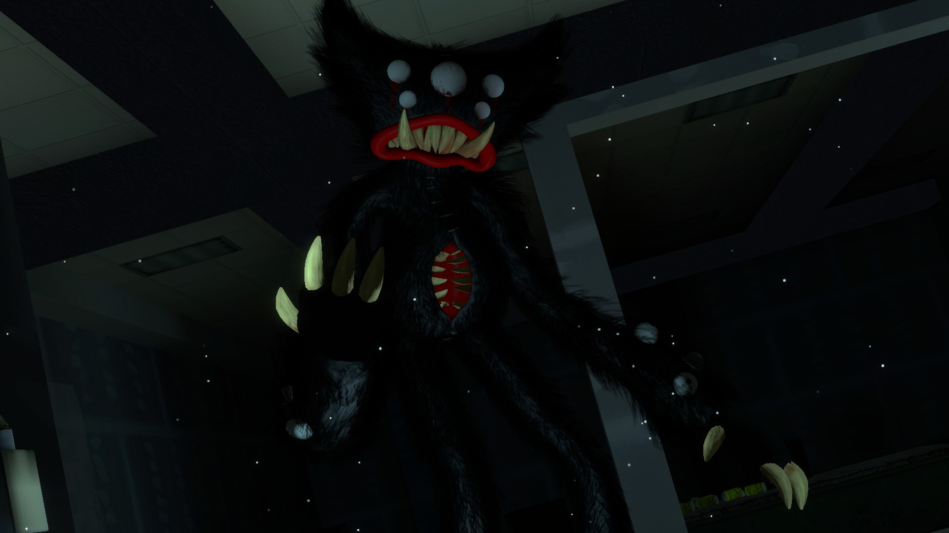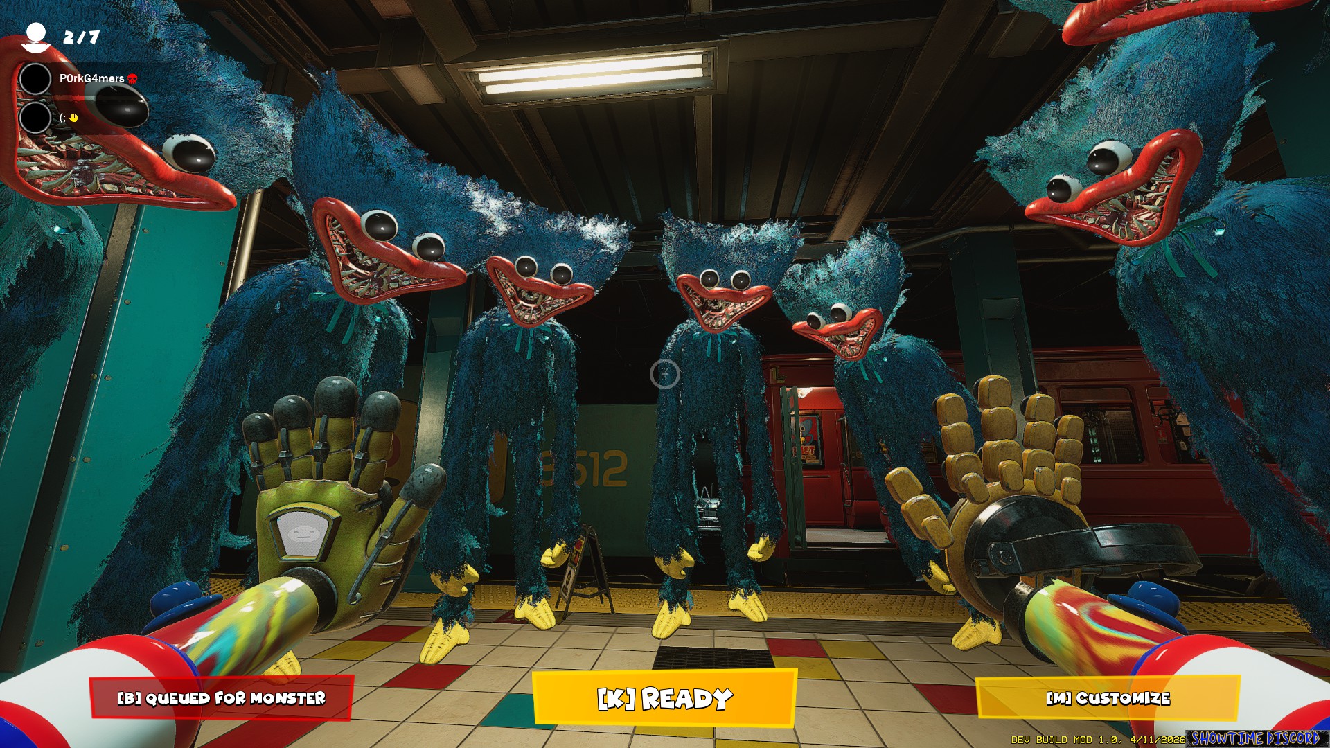 PROJECT: PLAYTIME is a Free-to-Play multiplayer horror game where six players attempt to create one giant toy while surviving a terrifying monster that roams the toy factory. A seventh player controls the monster and is given only one goal: Find and kill everyone.
