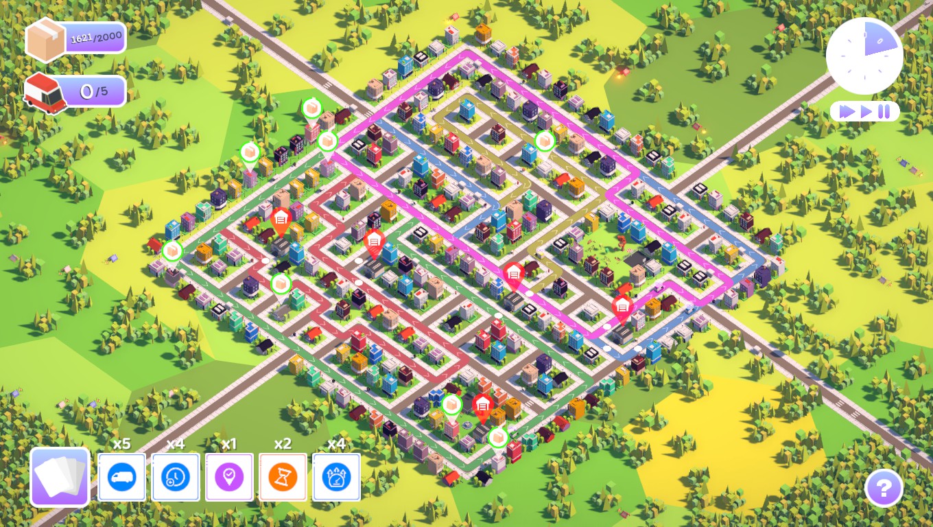 Package Rush is a strategy game about planning a delivery route system in a fast-growing city. Build and modify routes to get all packages on time. How long can you keep delivering?