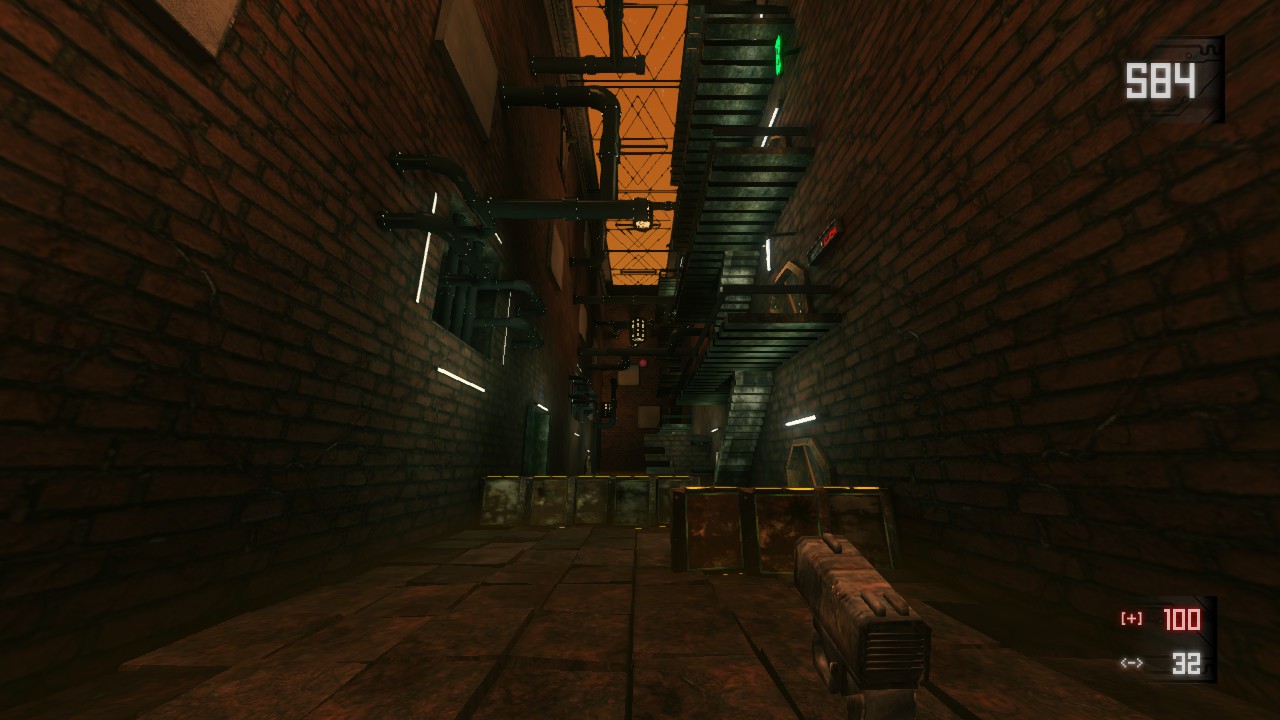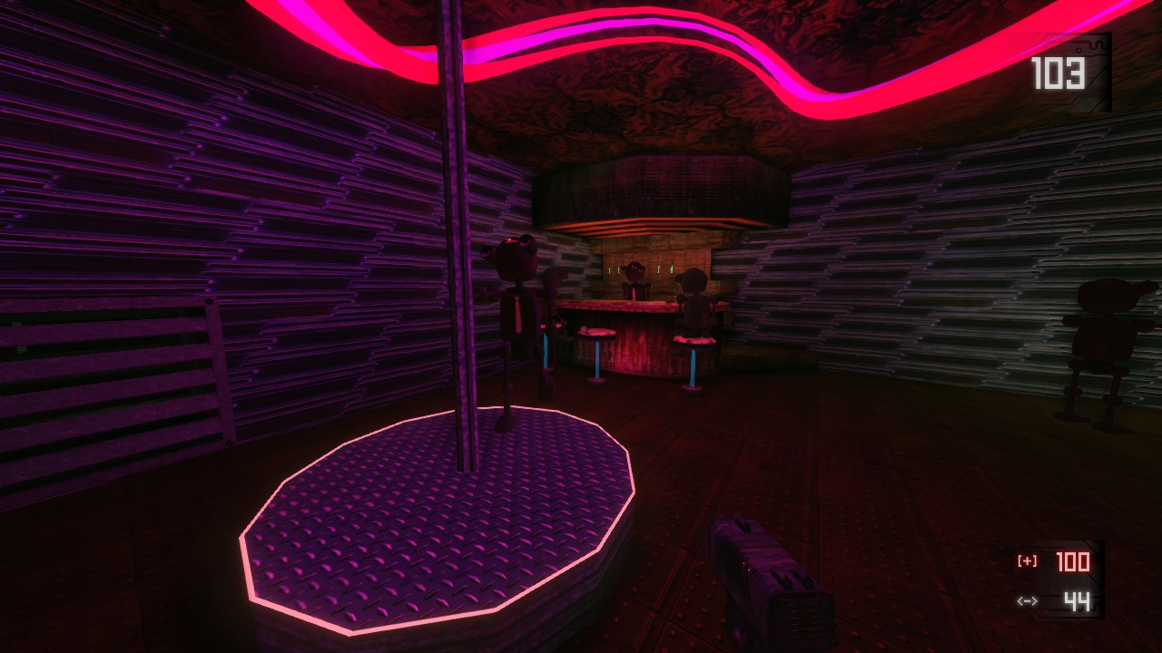 In Syndeo-Complex you will explore five different environments connected by a hub. Each level has its own mechanics, weapons, enemies and bosses. The Keli, small droids, will (probably) guide you in your quest.