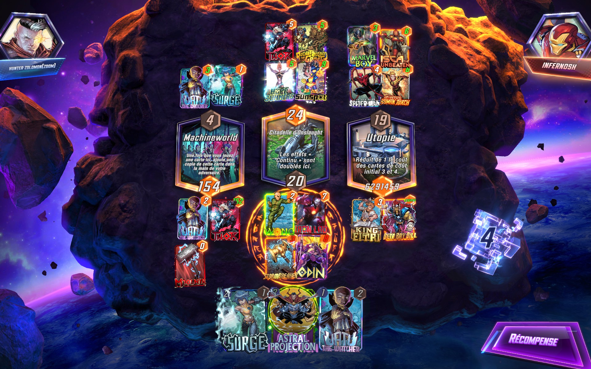 Objective: Play 5 total Cost of created cards ➡️ Randomly destroy up to 4 total Cost of enemy cards. (0/5)