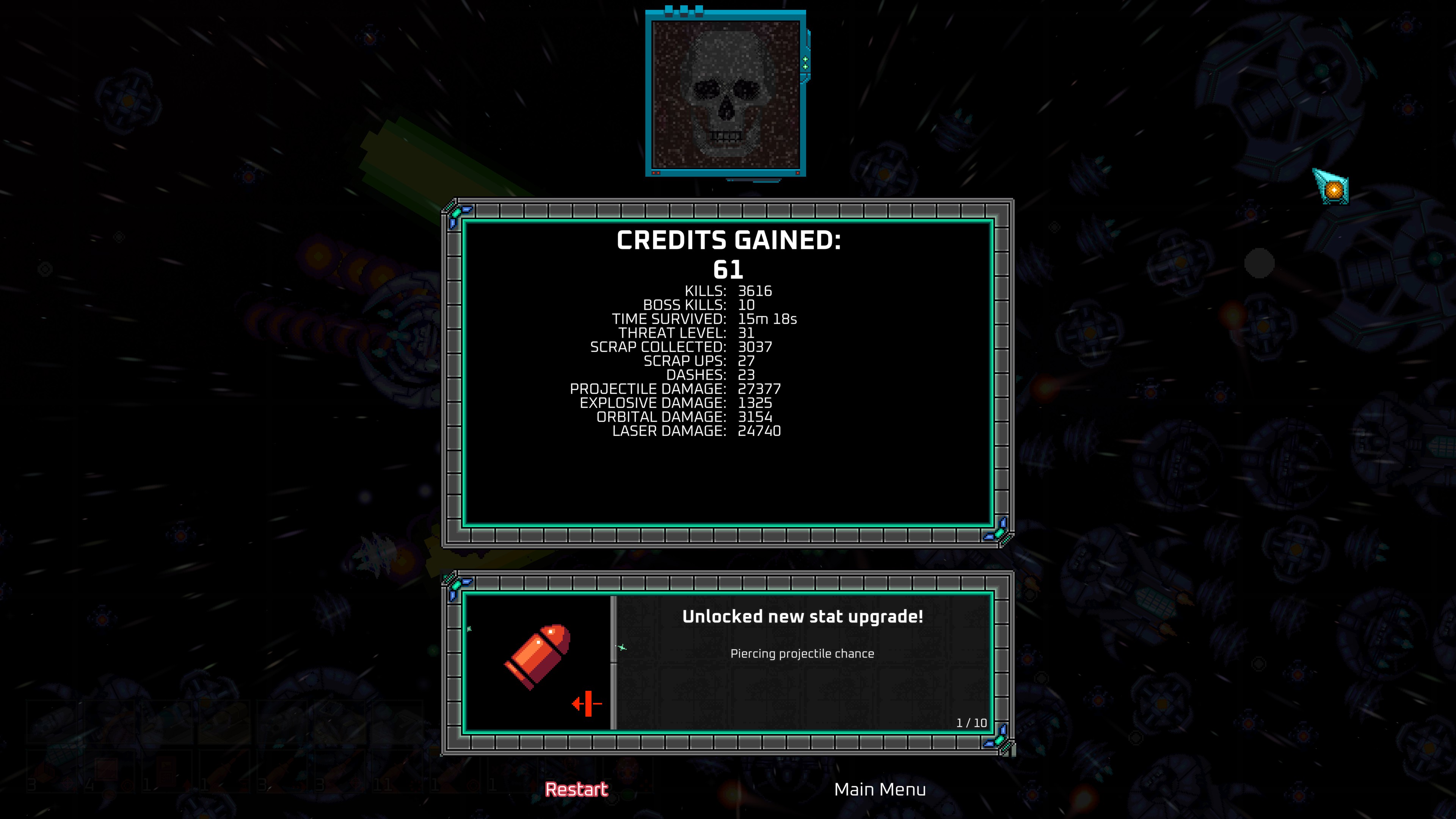 Blast hordes of alien ships into junk. Collect the scrap to upgrade your ship into an unstoppable force of destruction. Unlock new characters and weapons and upgrade your stats between runs.