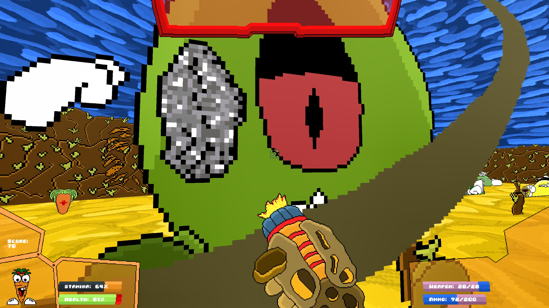 You are Carro, the lone carrot on a mission to take back the Veg out World from all the moldy fruits and vegetables. Make sure your locked and loaded for some fun, old school, retro, shooter action.