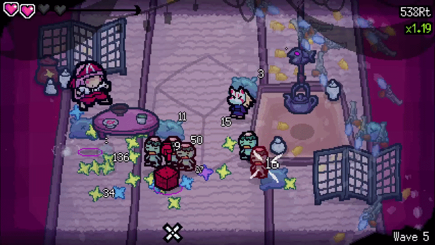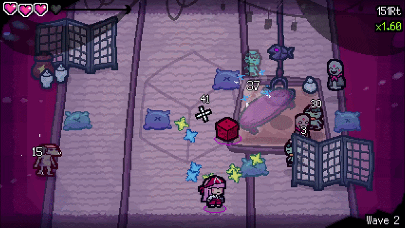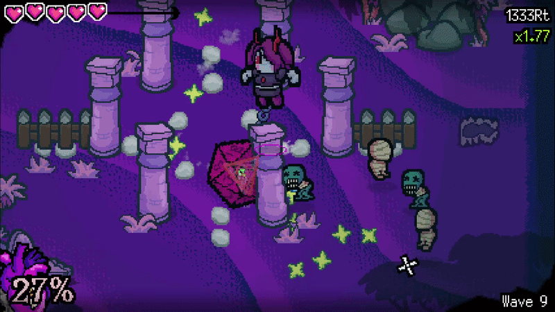 Every time our die lands, it'll trigger all quirks that activate when we stomp it. SO every time we throw our die, all the bullets we cast previously will turn back to face it, even ones that left the arena! No stomping needed!