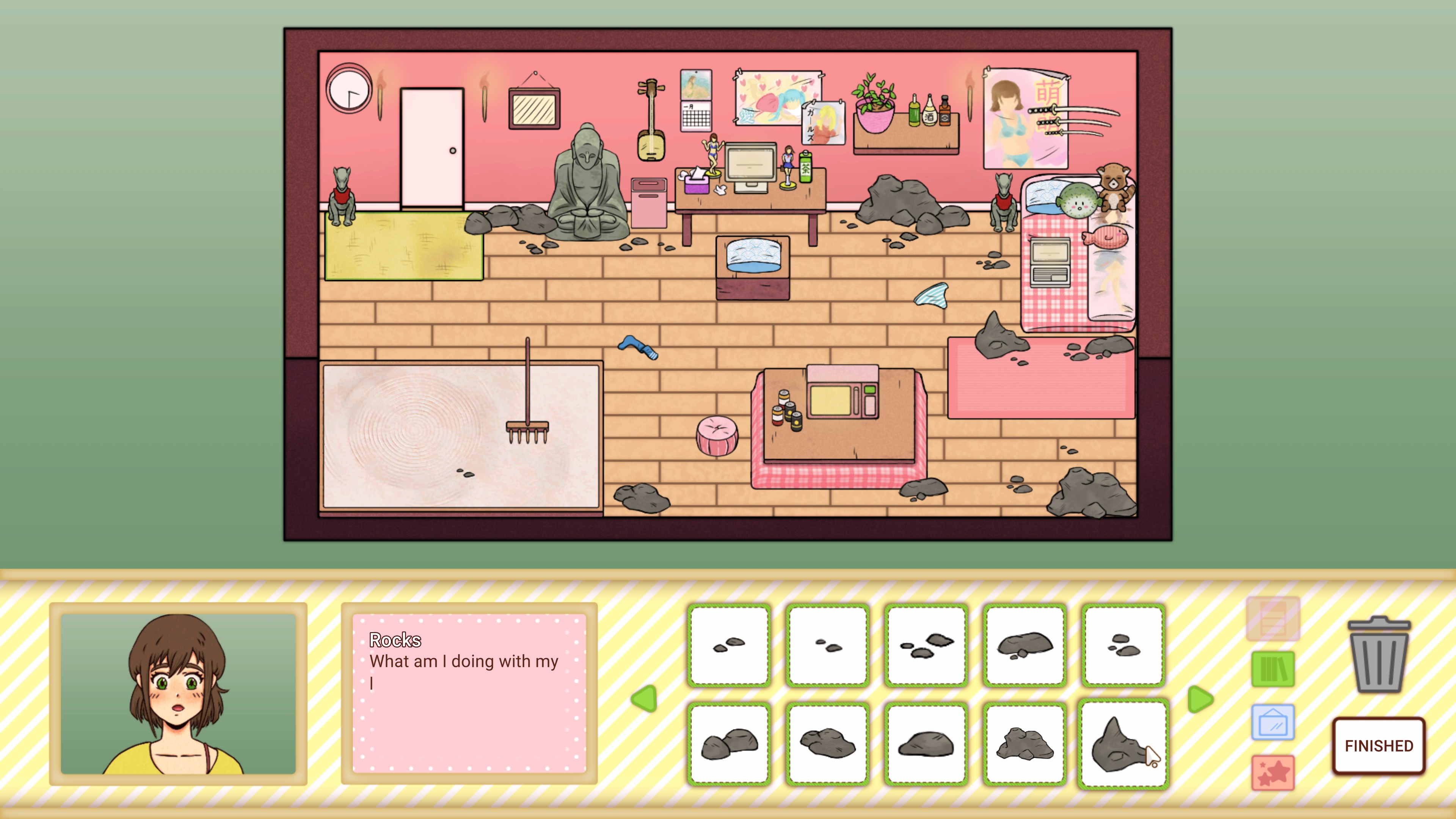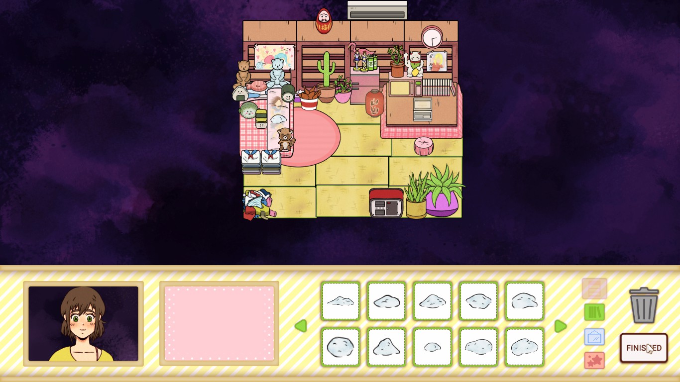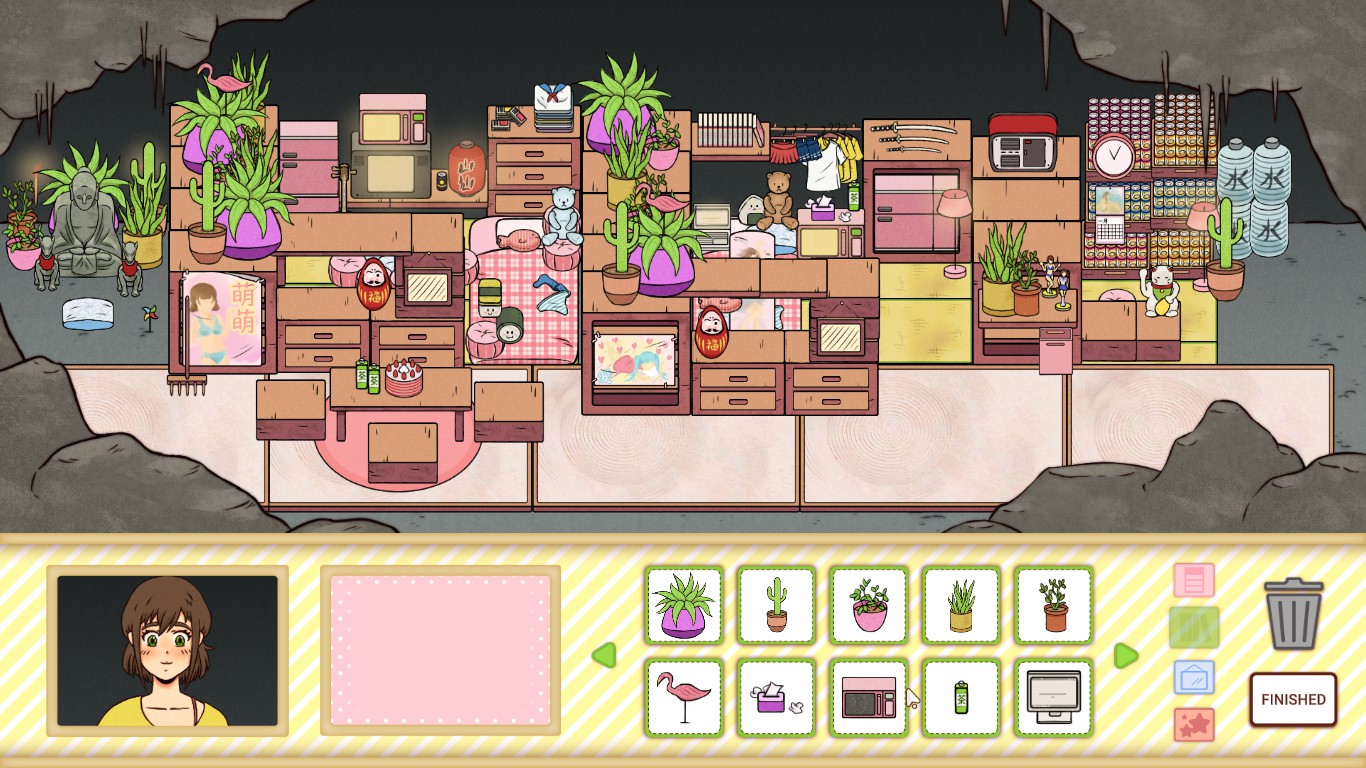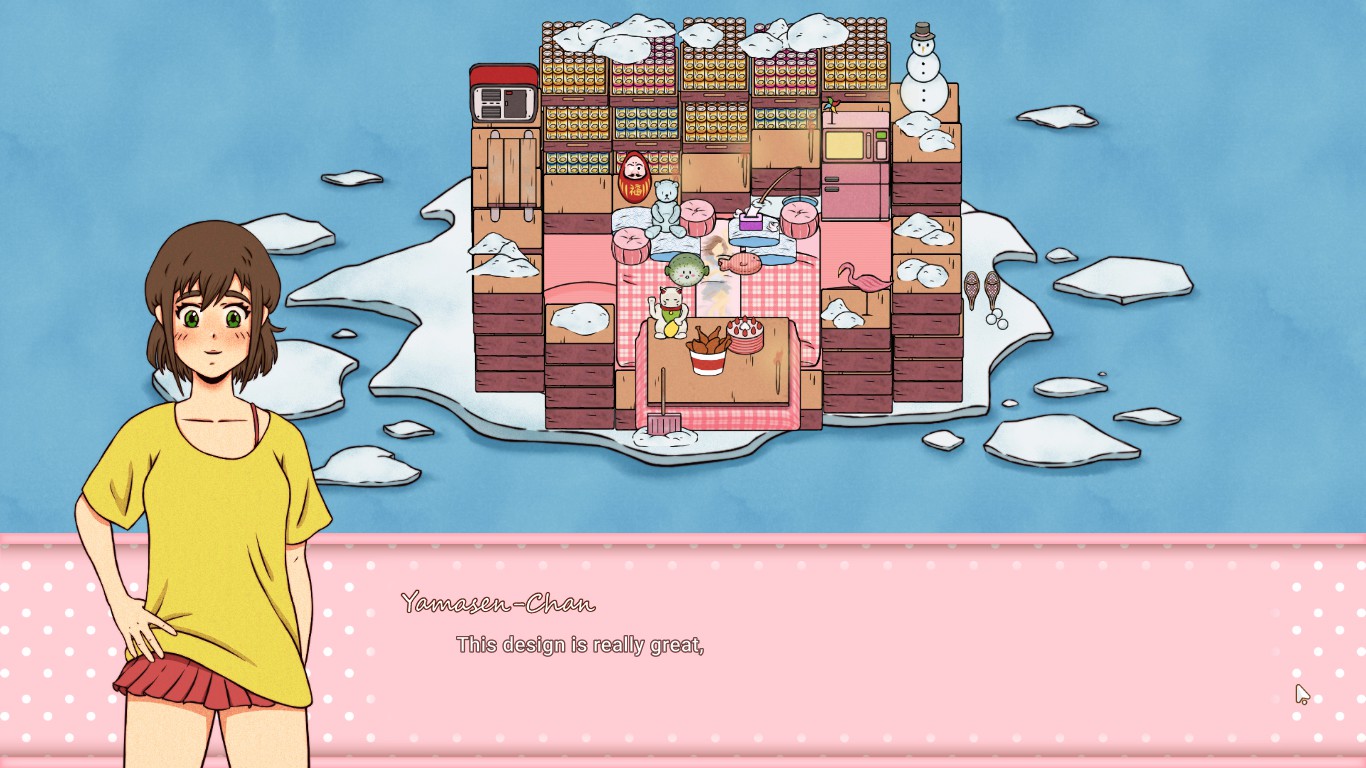 Yamasen-Chan is a hikikomori who lives in isolation and never leaves her home. Will you help her make a comfy home in this hikikomori themed visual novel designing game?
