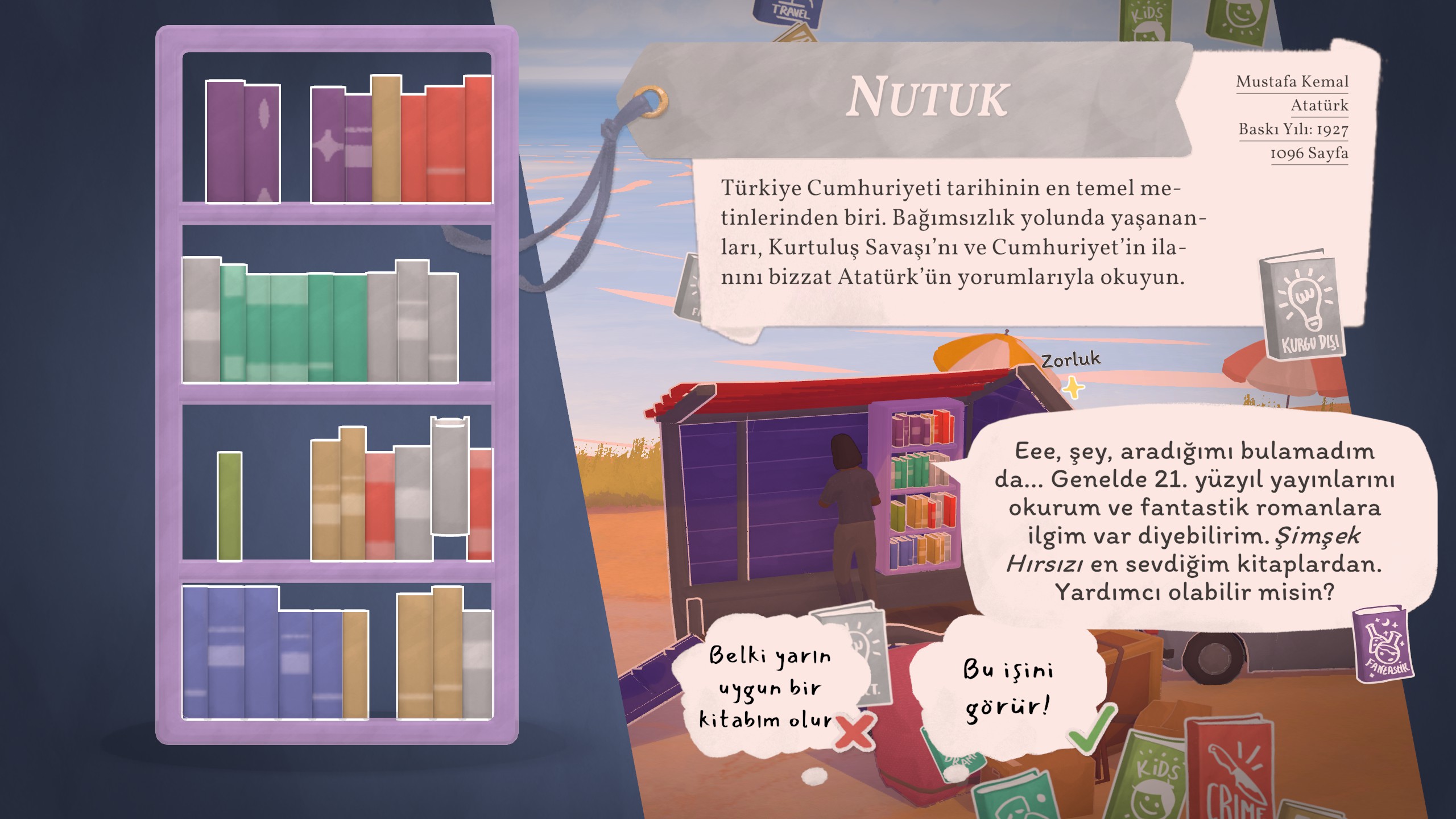 Leave everything behind and open a tiny bookshop by the sea in this cozy narrative management game. Stock your tiny bookshop with different books and items, set up shop in scenic locations, and run your cozy second-hand bookshop while getting to know the locals.