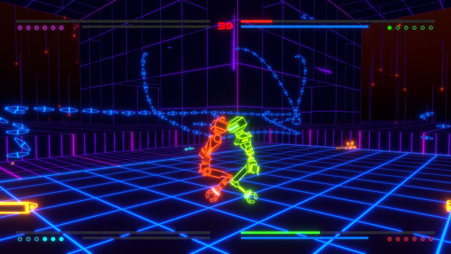 Dismember opponents with physics-based punches and weapons in glowing arenas inspired by Tron.