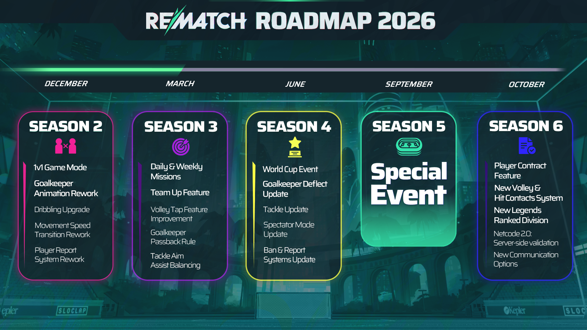 Season 3 rolled out two weeks ago with a batch of new social and progression features. And that’s just the start! The pitch will keep evolving this year, with many exciting things planned to push Rematch further.