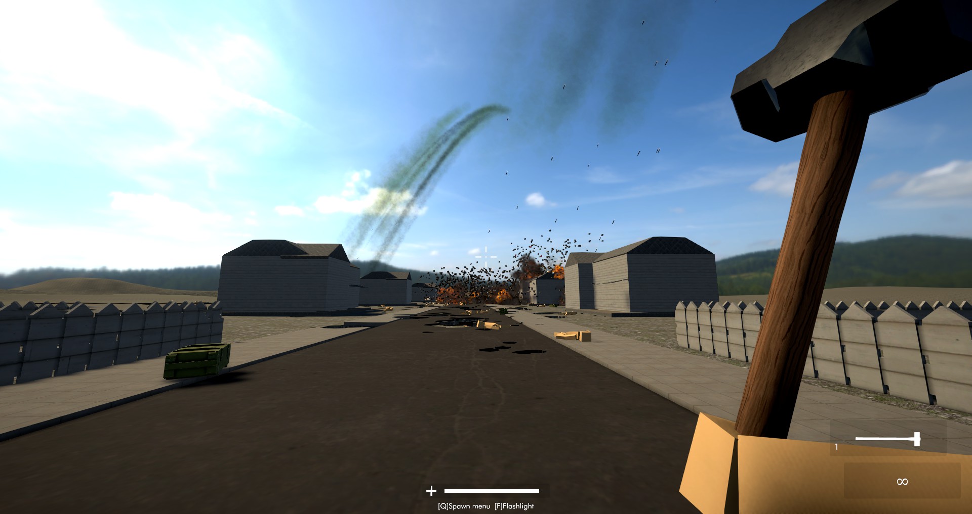 Multiplayer sandbox with destructible environment. Destroy different maps, build your own, and play with your friends and other people...