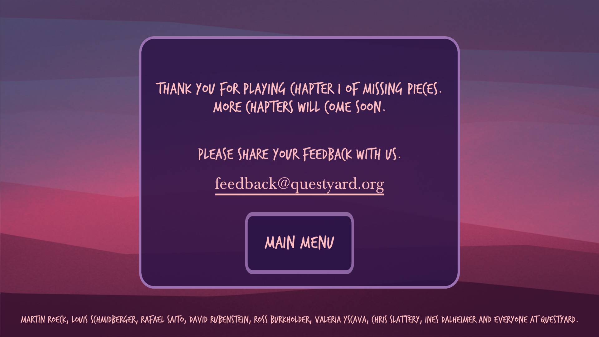 Missing Pieces is a story-driven adventure in a vibrant alien world, full of hidden secrets, a plethora of languages and a sparkling cast of characters: lovable rogues, heartbroken families, and questionable allies. Find friendship and love, learn about yourself and discover who you really are!