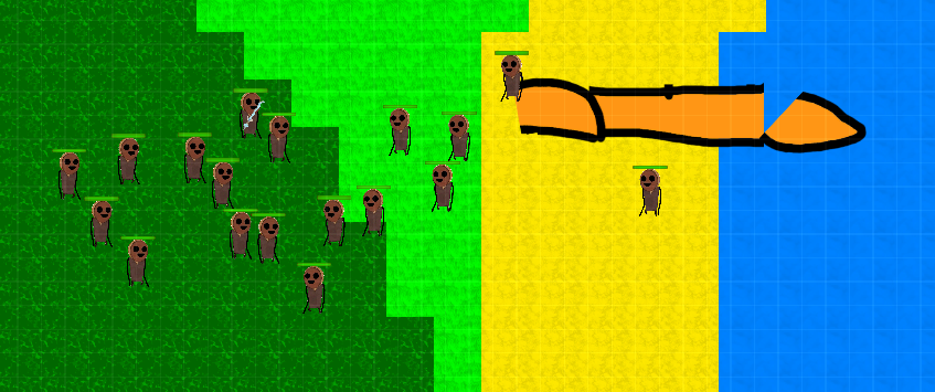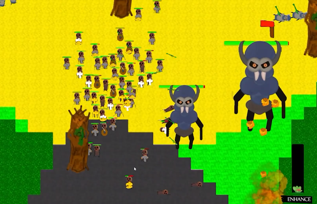 Yeah the purple head monsters will be roaming this island. Take control of the island to move on while avoiding these guys! Plus you get access to sand and snow biomes!