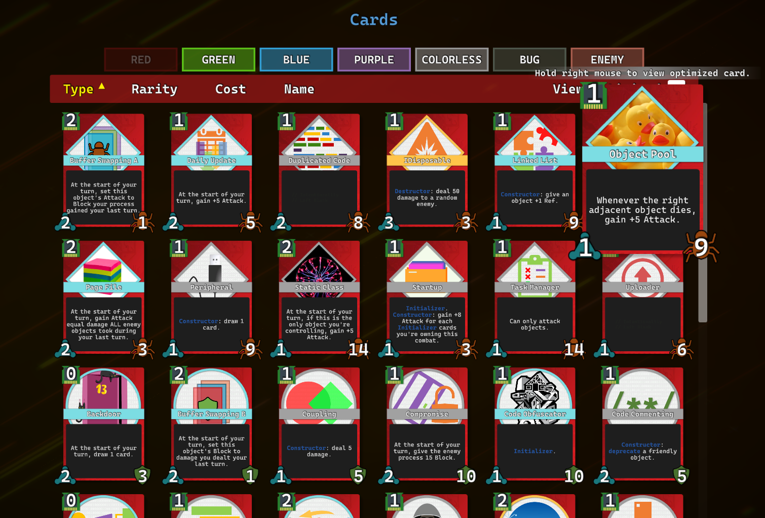 A roguelike deckbuilding card game where you control, and buff your objects to defeat all kinds of funny sci-fi enemies.