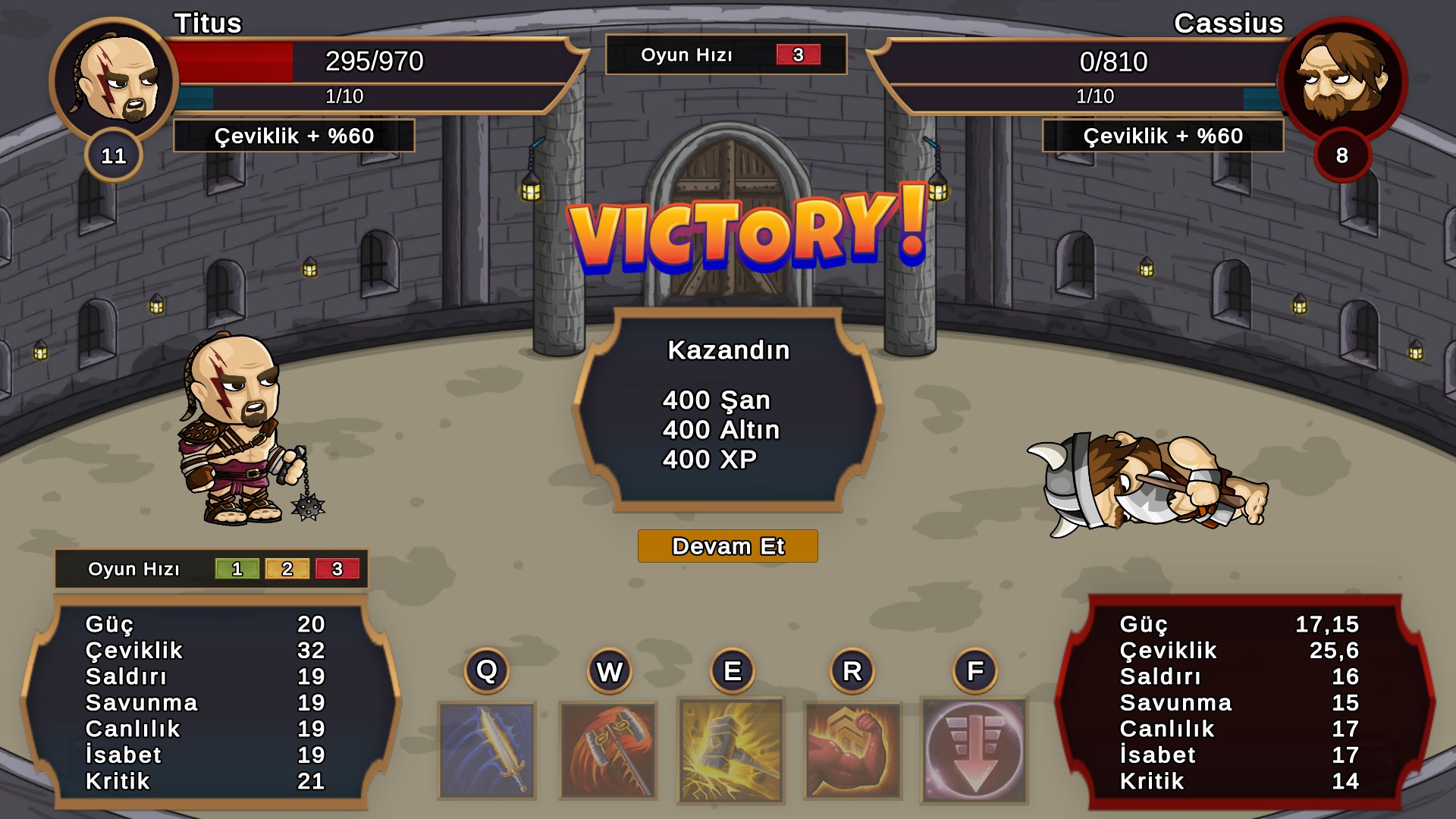 A Turn-Based Fighting Game Set in the Roman Era, where you can develop your Gladiators and fight them in arenas to increase the glory of your Ludus.