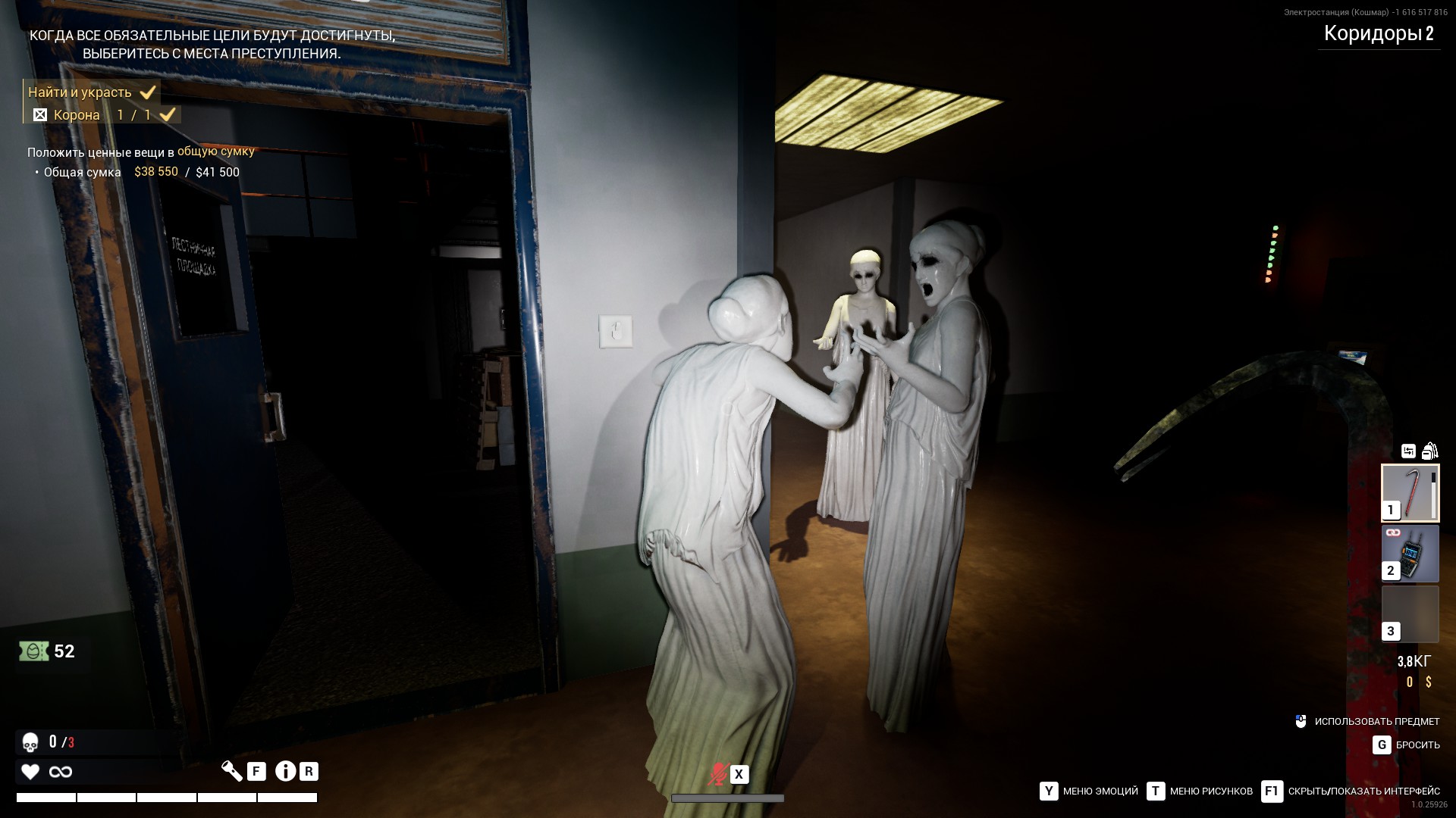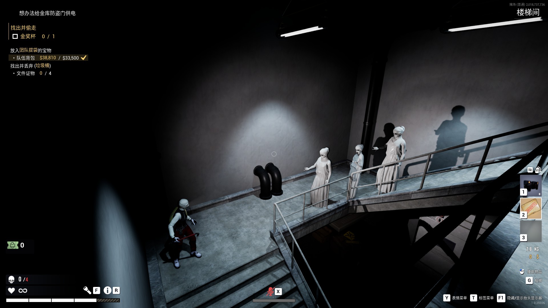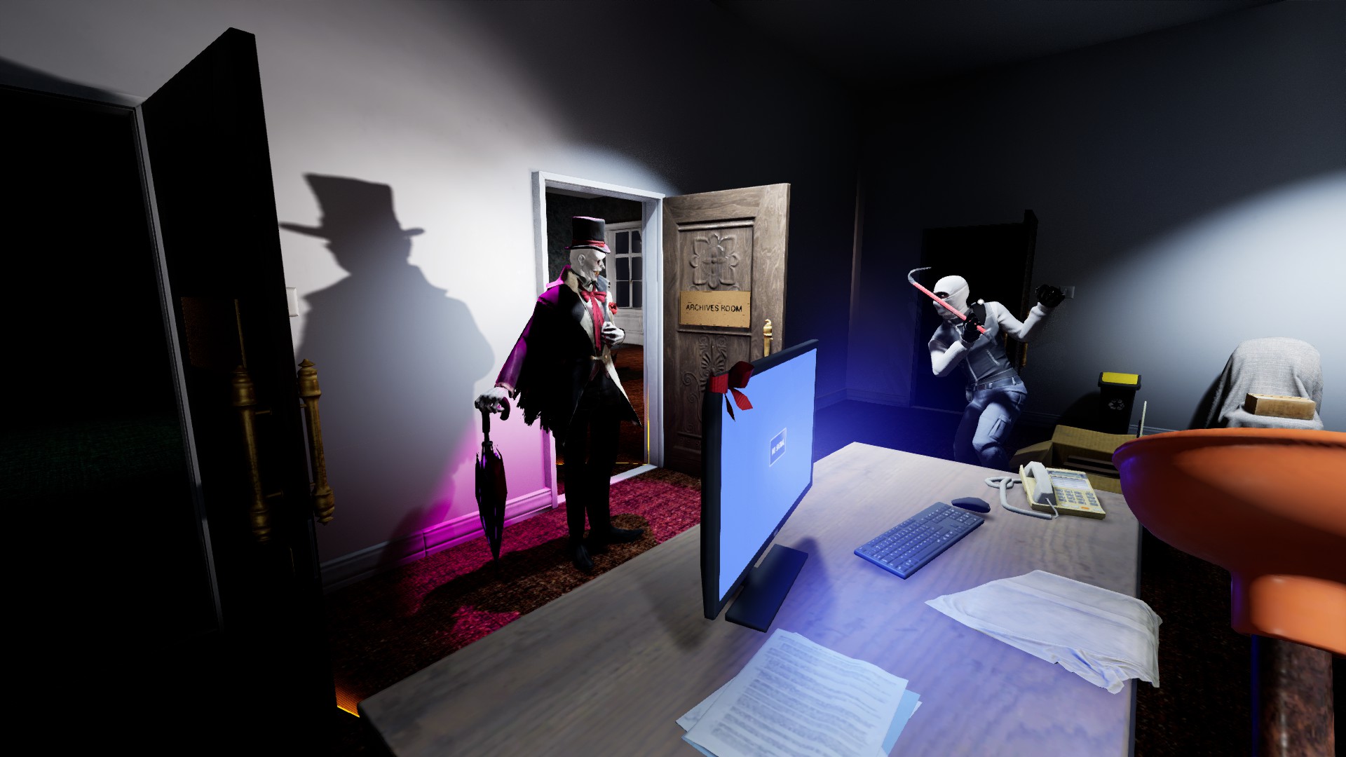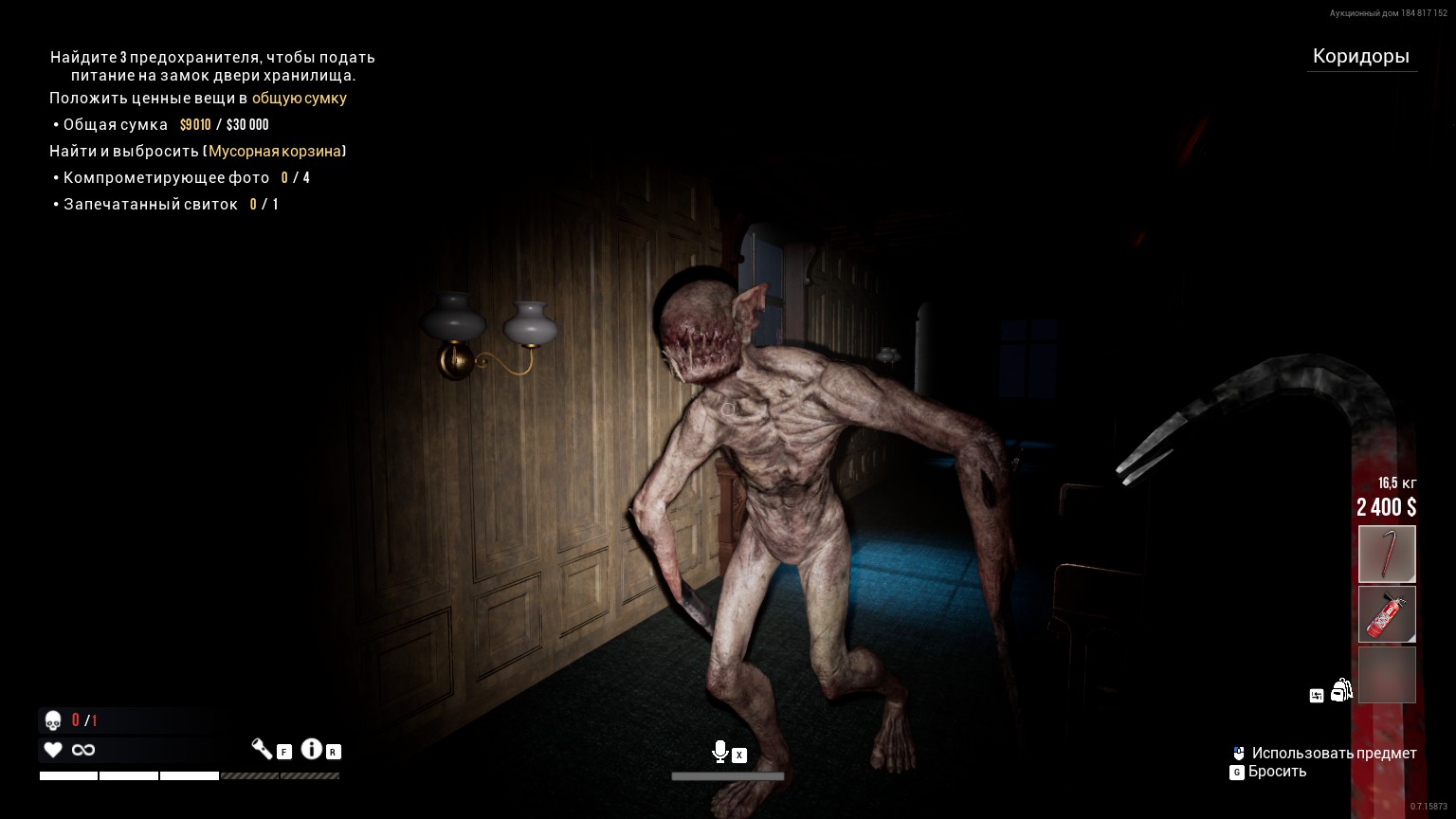Dark Hours is a co-op survival horror game for 1-4 players. Your heist has been disrupted by a supernatural event, and your team of robbers is now trapped with an evil entity. Forget your plan, your mission is to survive. Explore and cooperate to find a way out.