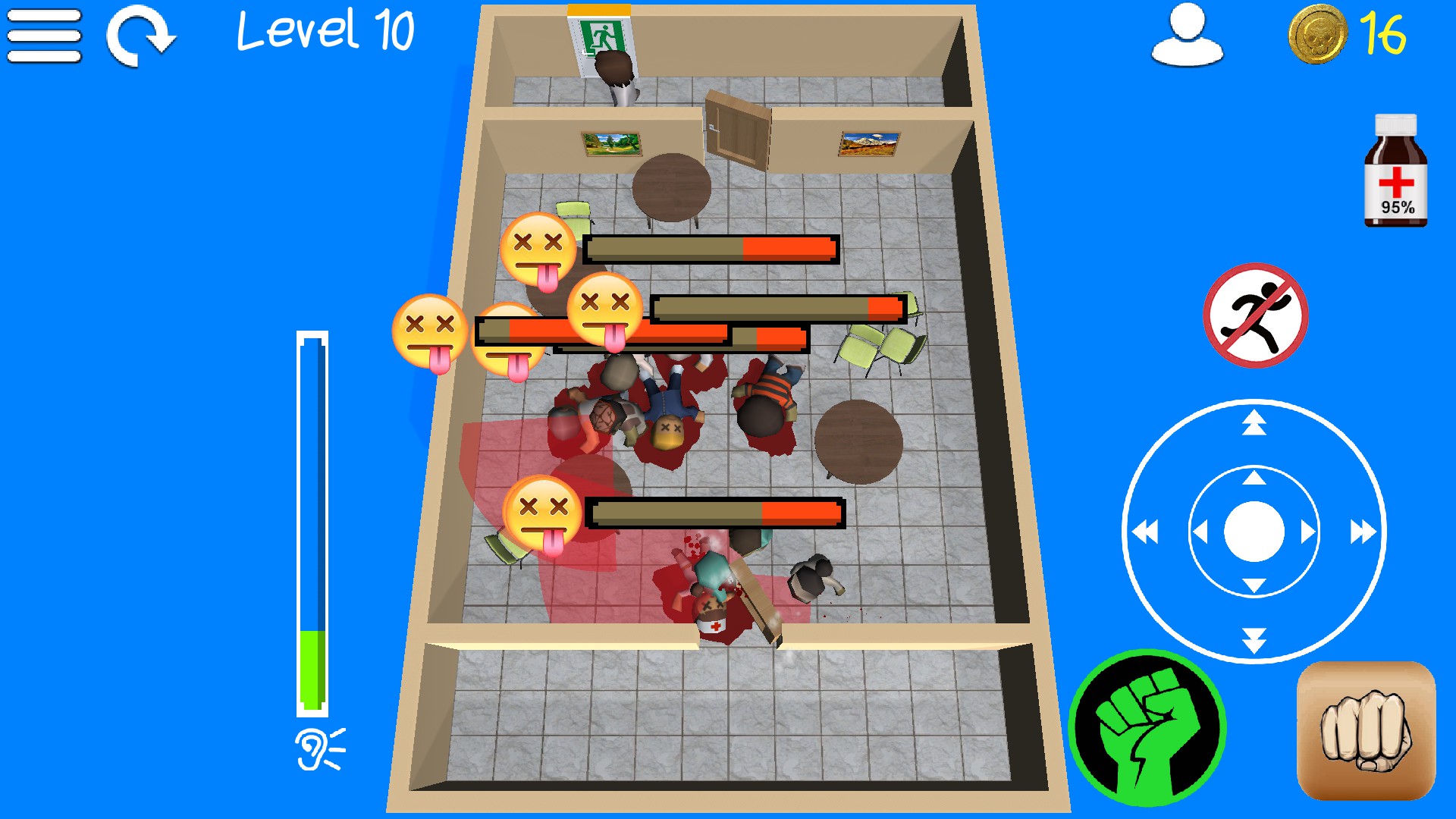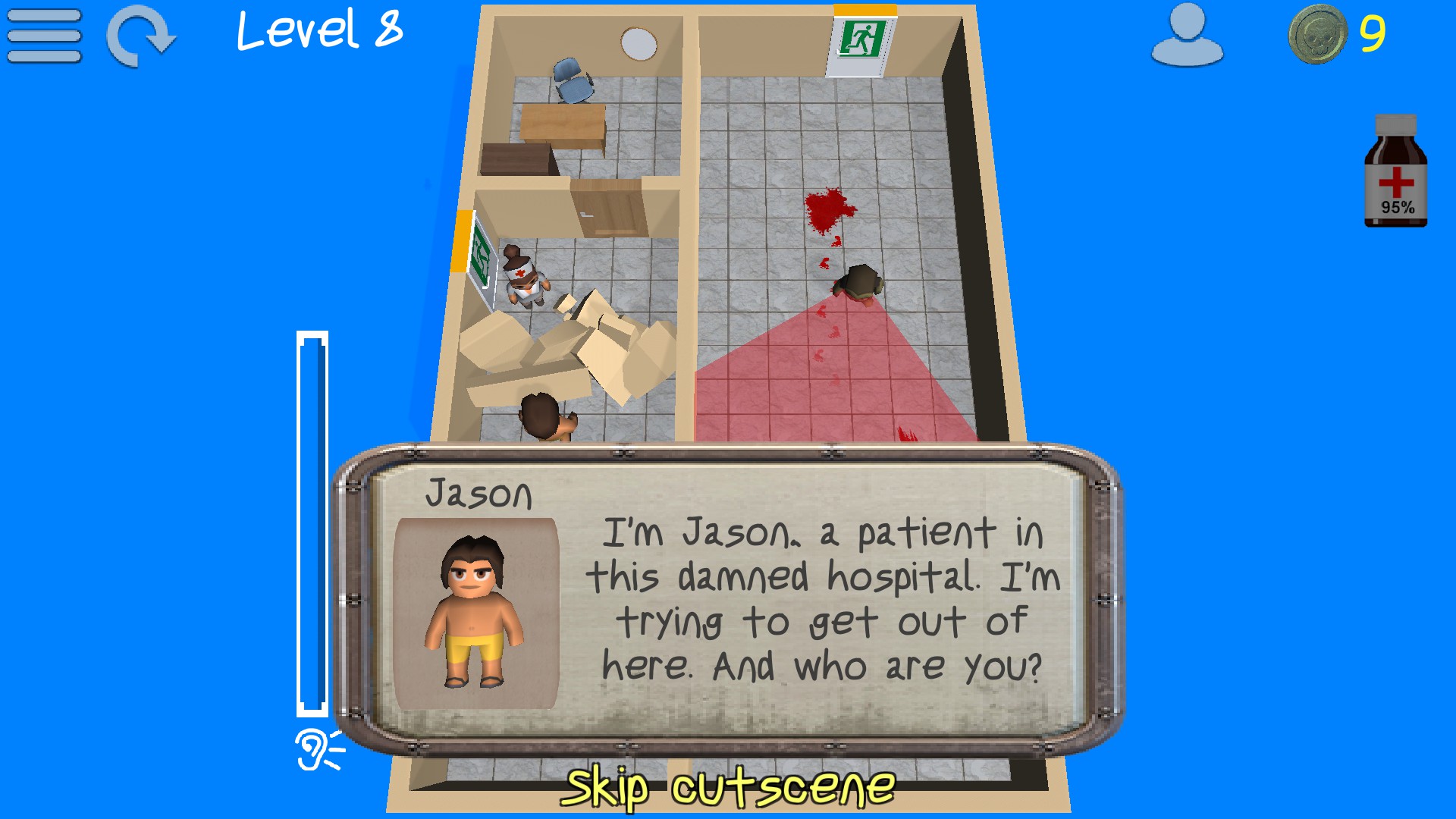 Escape the hospital full of zombies in stealth action game. Funny top-down single-player puzzle.