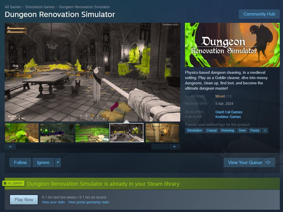Physics-based dungeon cleaning, in a medieval setting. Play as a Goblin cleaner, dive into messy dungeons, clean up, find loot, and become the ultimate dungeon master!