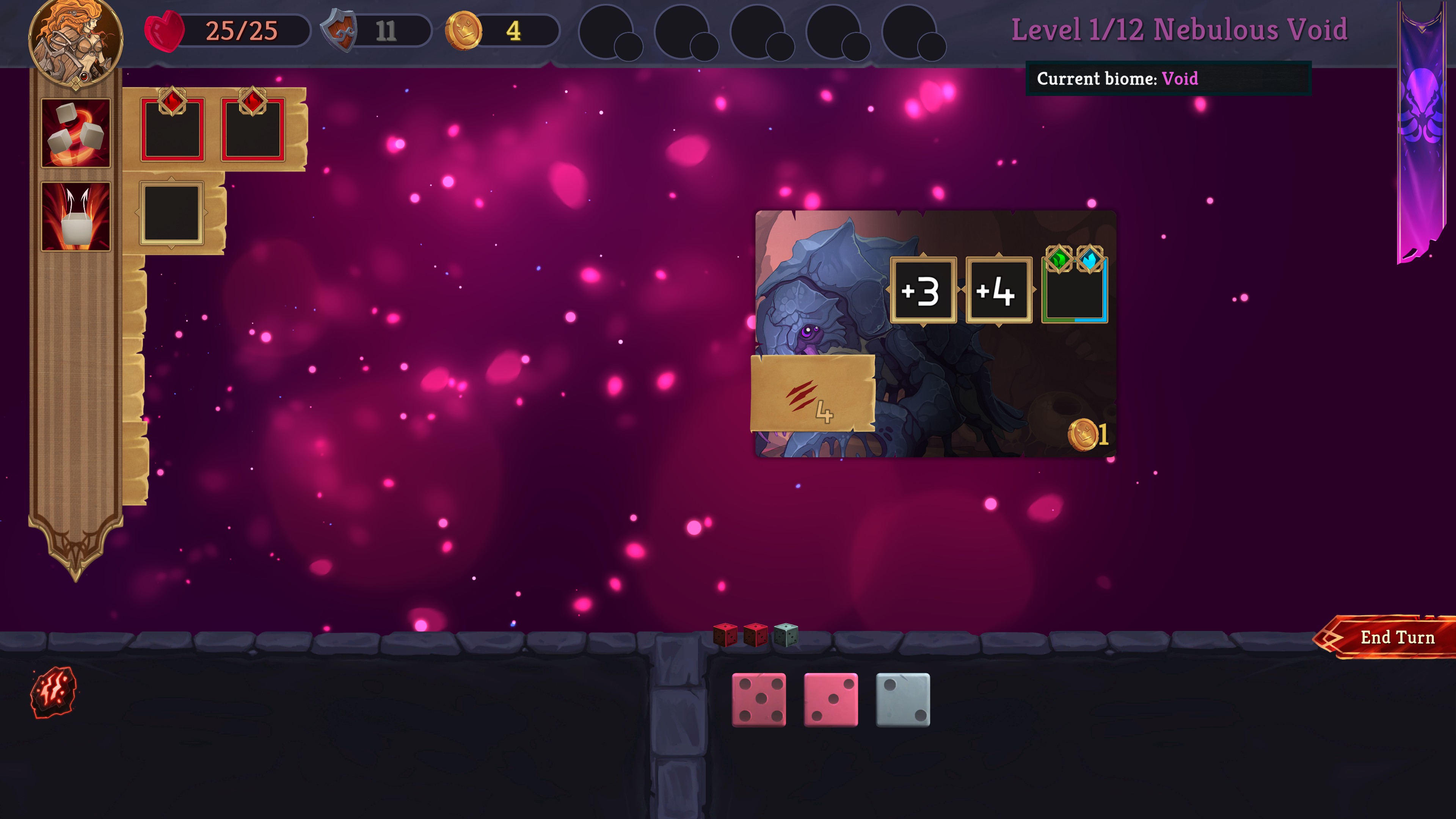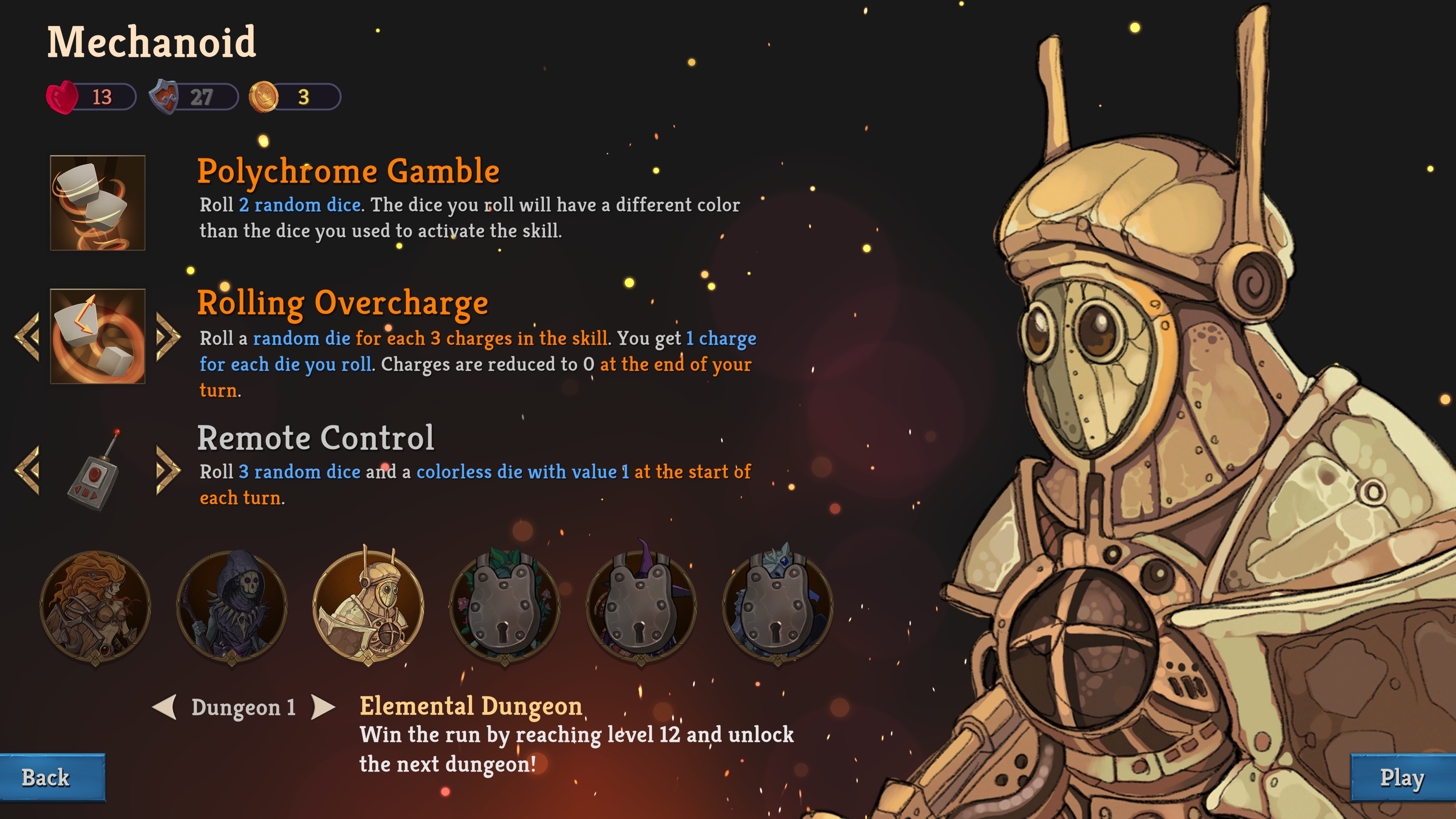 Explore randomly generated card dungeons where you can only move Right and Down, use Dice to defeat mighty enemies, gather powerful artifacts, and learn new abilities! Will you be able to escape from the dungeon?
