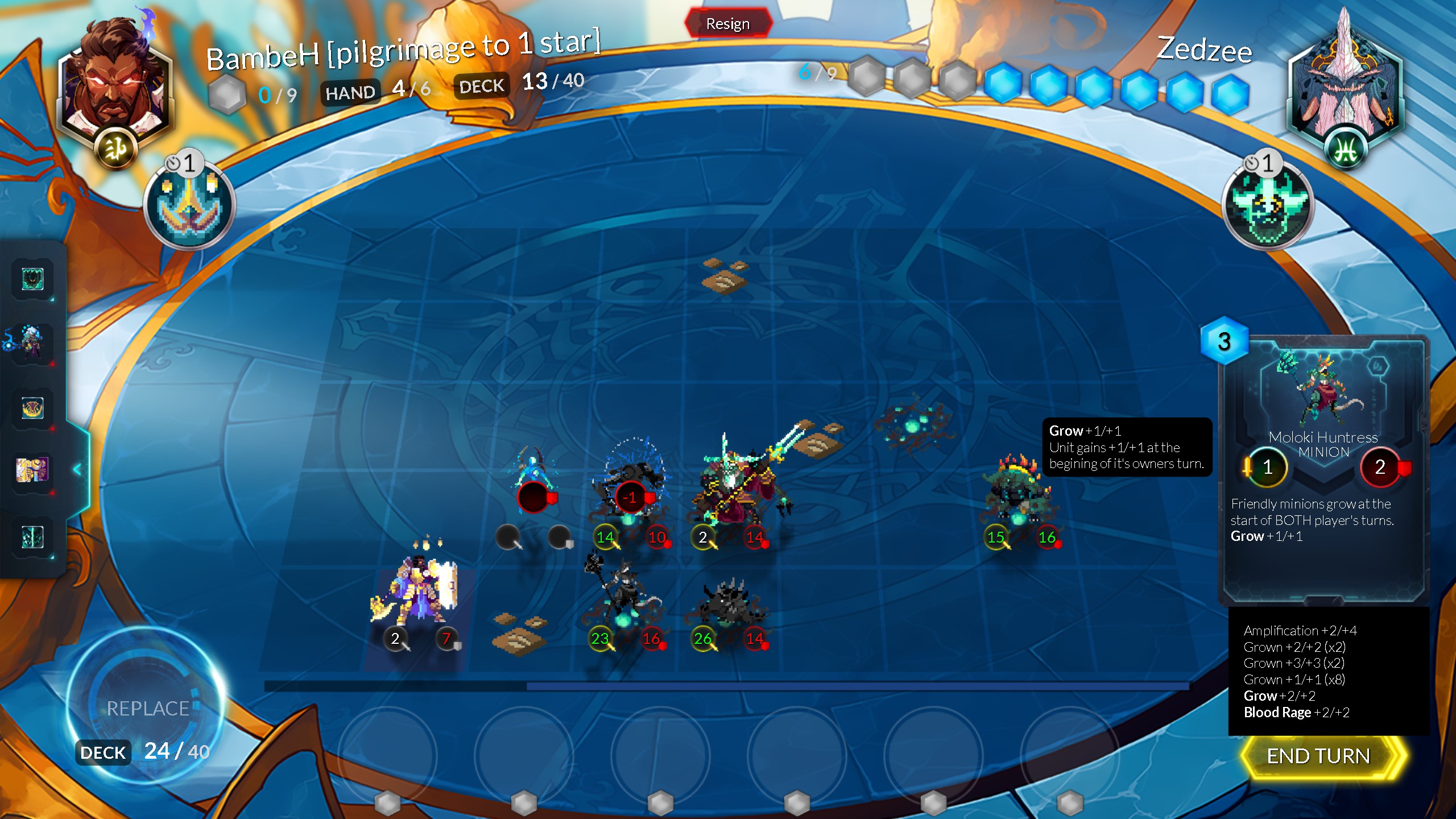 Duelyst is a unique hybrid 1v1 card game where you play your units and spells onto a 9x5 board where you can position them to your advantage. You can pick from different generals with unique Bloodbound spells. All 800+ cards are unlocked so you can play anything you want from the start.