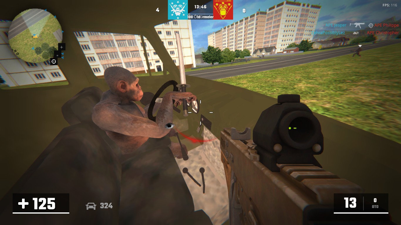 Apewar is an online tactical and action FPS/TPS monkey war game adapted from real life. Build your monkey team and fight against your enemies. By playing in a coordinated way, you can have fun and win with a good strategy. Monkeys are strong together!