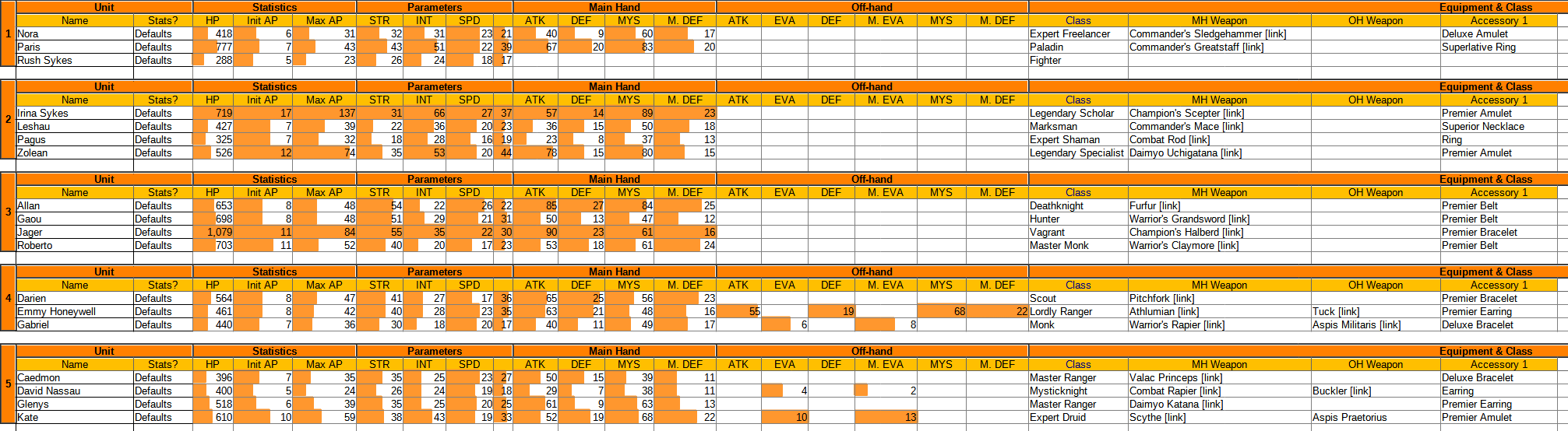 The only editing you should ever do on the Unions sheet is changing the filters (to switch between Default and Custom Stats, reorganize the Unions themselves, etc.) or something cosmetic. All changes specific to the Units themselves should be made on their respective sheet.