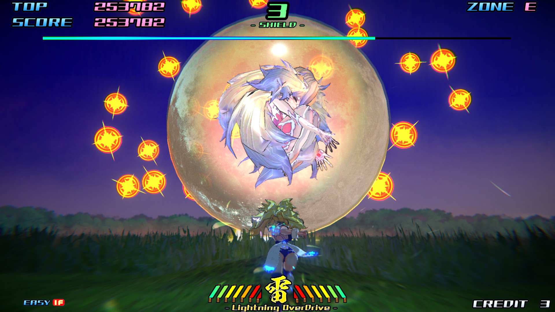 A high-speed 3D rail shooter inspired by legendary arcade classics. Control the humanoid combat weapon ASURA and battle overwhelming waves of invaders using Energy Shot, Shining Knuckle, and the time-bending Lightning Over Drive.