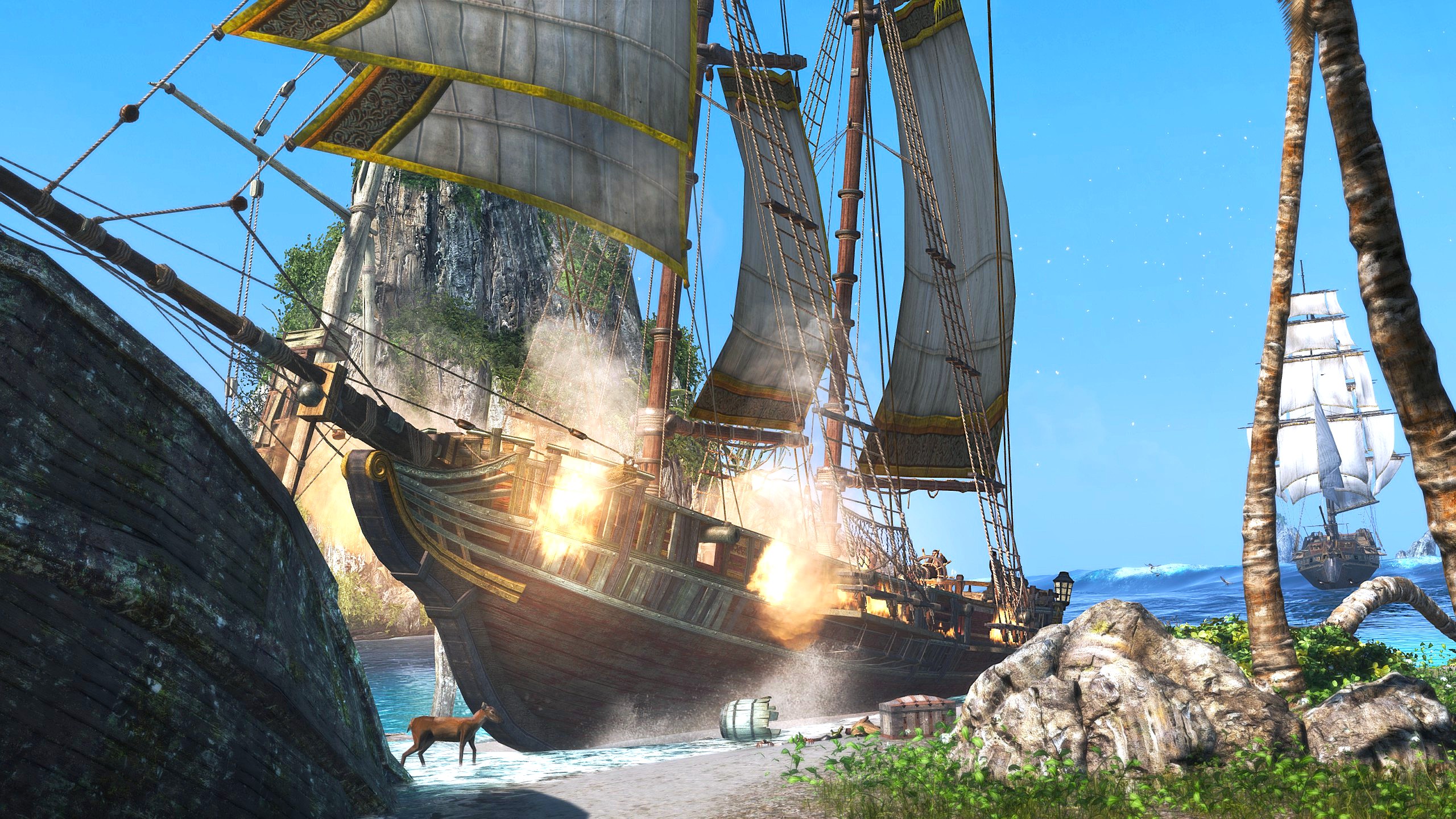 Finally, if you pre-purchase the Standard or Deluxe Edition of Assassin’s Creed Black Flag Resynced before the launch, you’ll get a digital download of the Blackbeard Crimson pack, including a pistol, and sword which each provide a unique perk, as well as a costume for Edward.