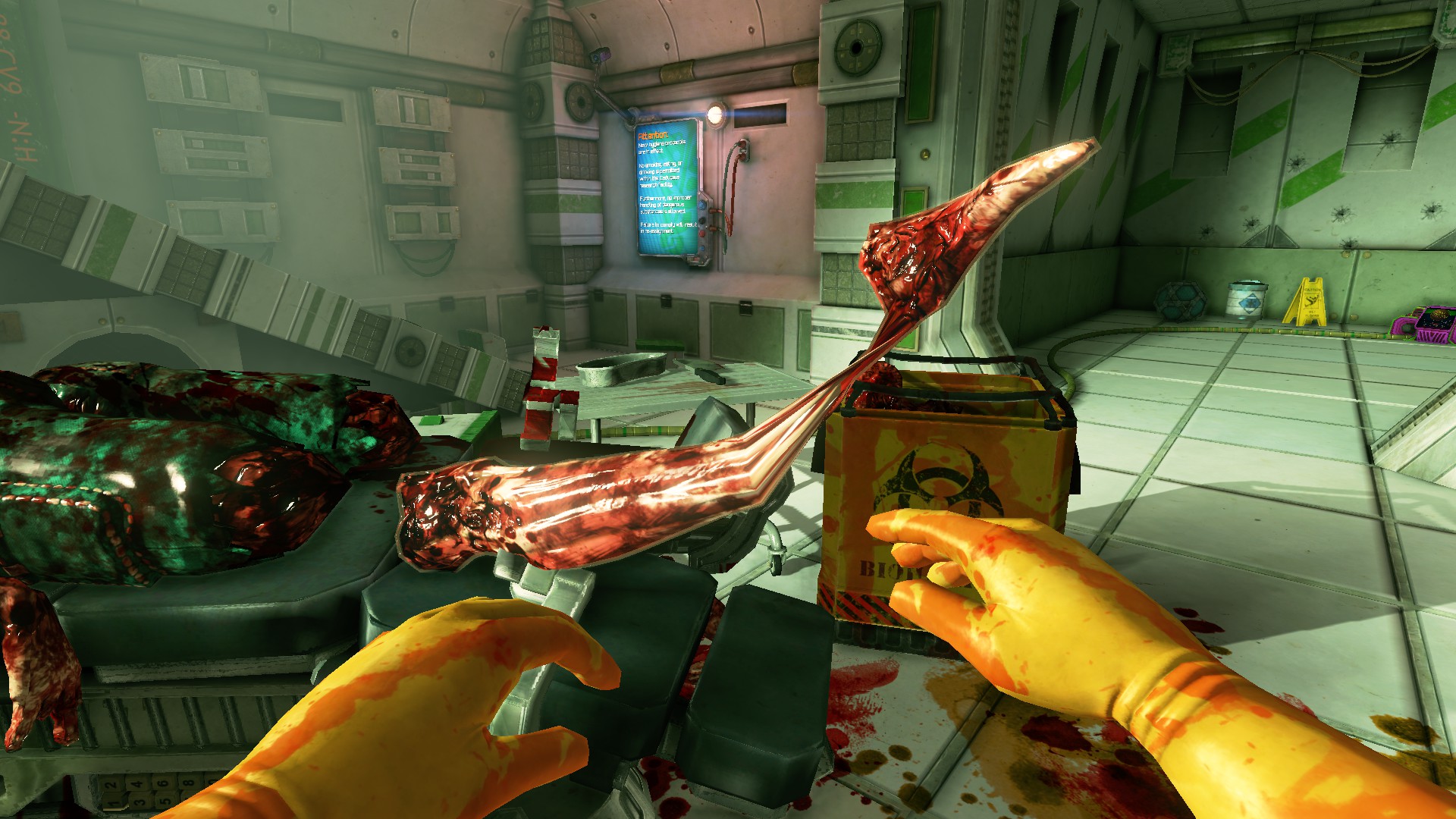 In Viscera Cleanup Detail, you step into the boots of a space-station janitor tasked with cleaning up after various horrific sci-fi horror events. Instead of machineguns and plasma-rifles, your tools are a mop and bucket. That hero left a mess, and it's up to you to deal with the aftermath.
