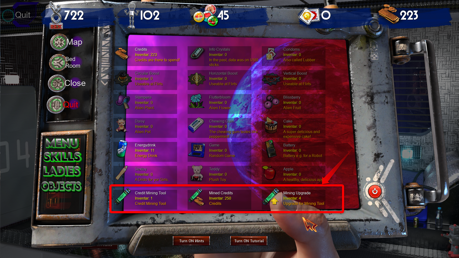 Purchase upgrades to enhance your mining tool, enabling it to generate credits at a faster rate!