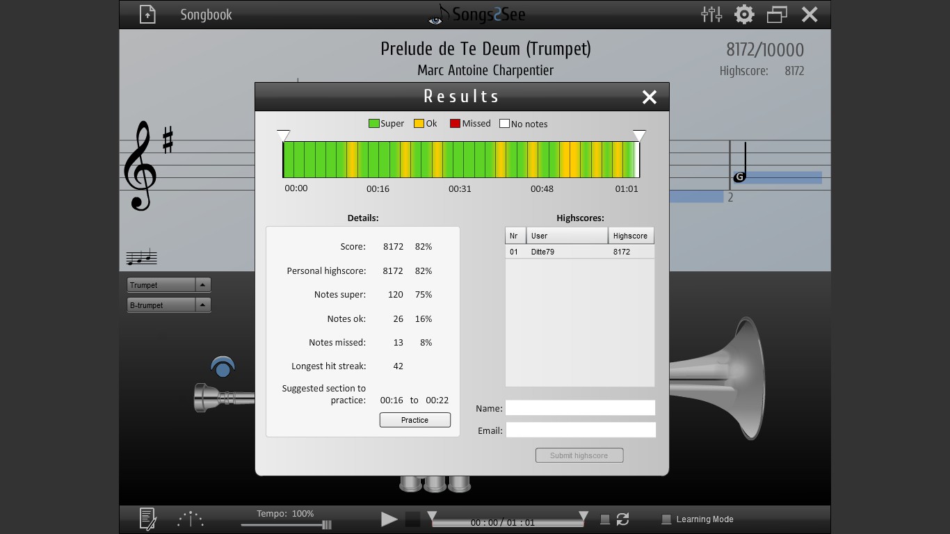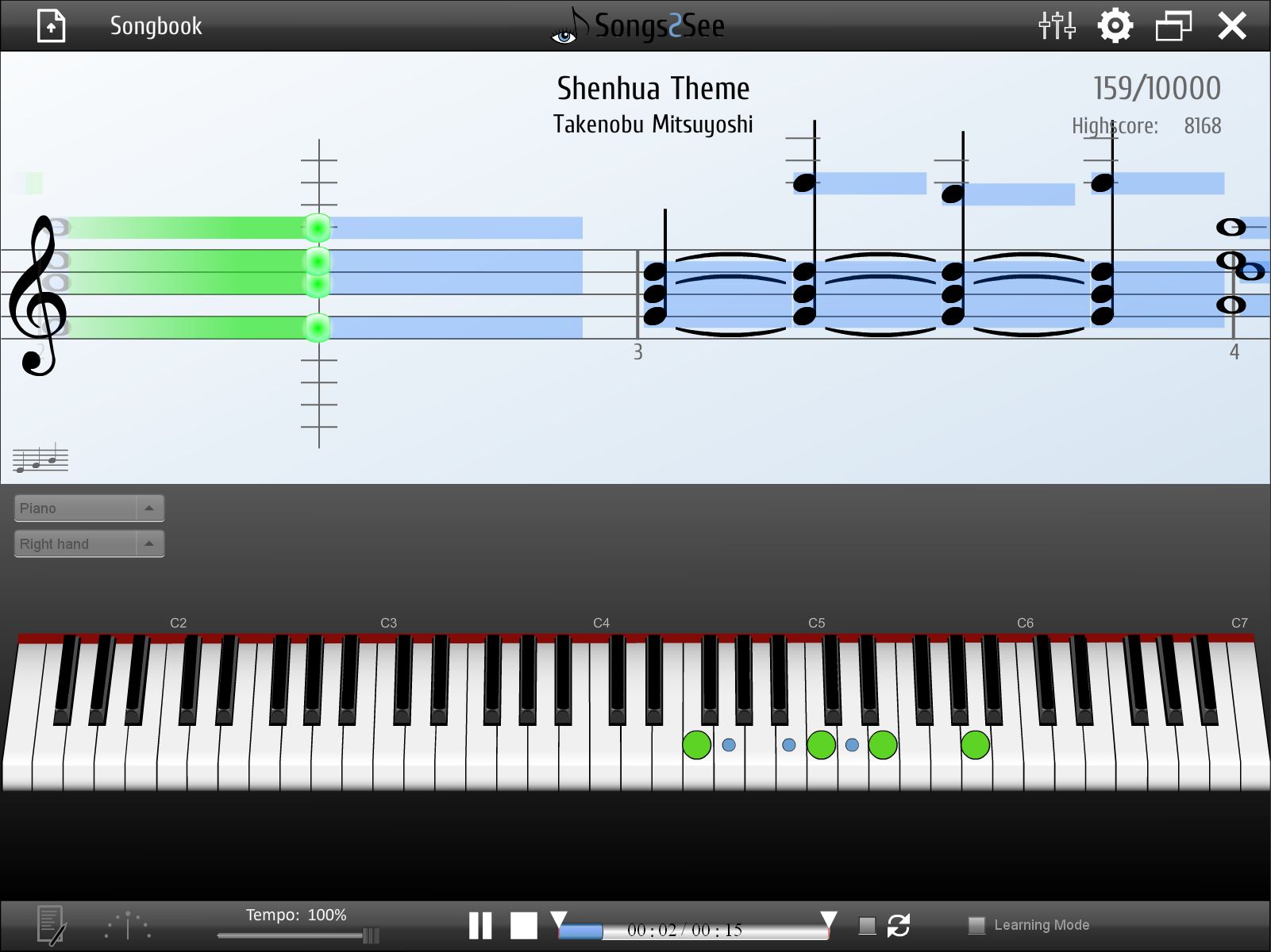 Songs2See is your personal companion to learn a musical instrument in a fun way. It rates your play in in realtime and helps you train sight reading and finger dexterity with its interactive sheet music display.
