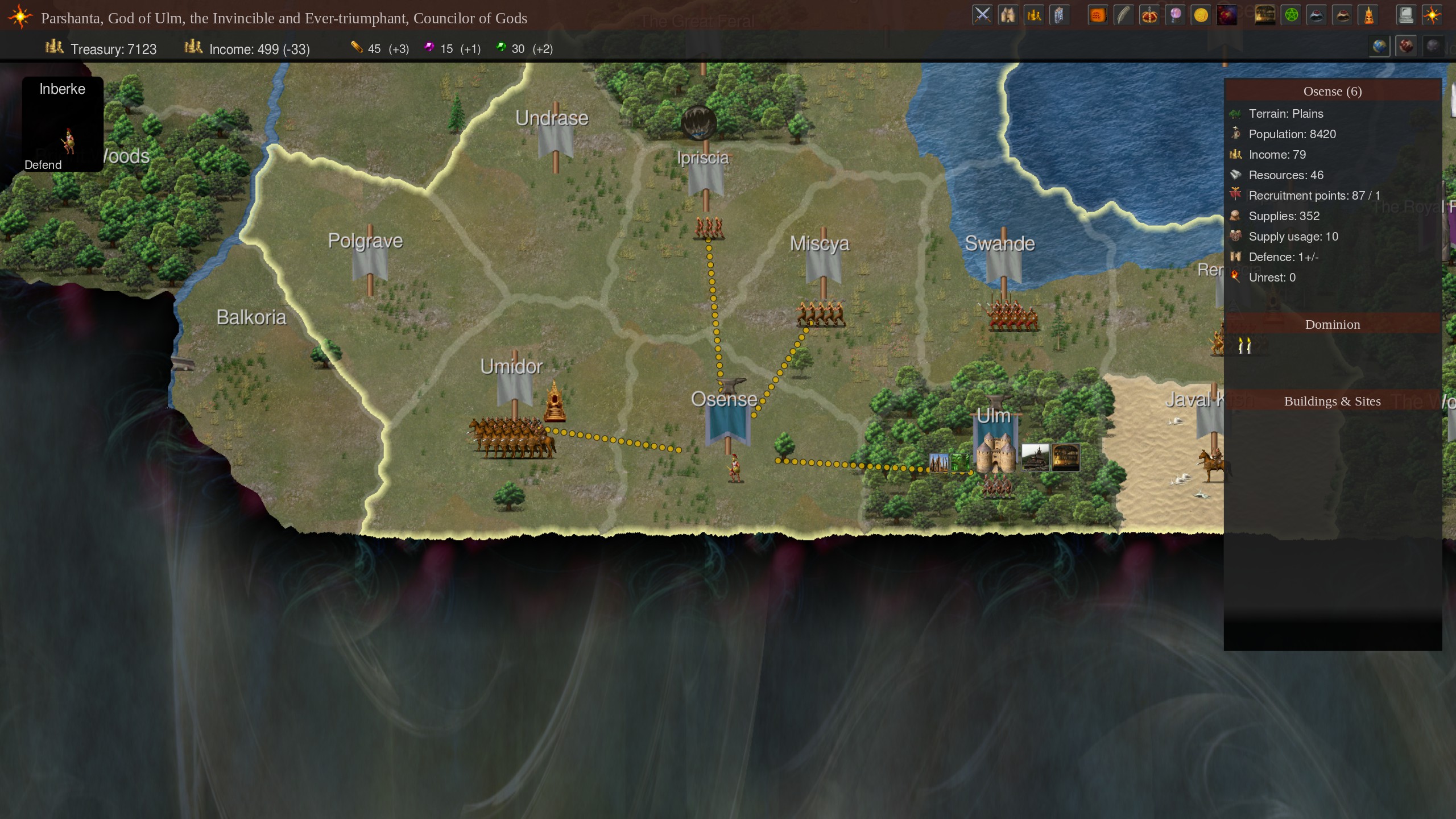 In Dominions 6 you take control of a powerful being that rules a nation and aspires to godhood. The type of Pretender Gods can vary from magically powerful arch mages to old dragons or an enormous tree. Dominions is a deep 4x turn based strategy game with a very large variety of spells and units.