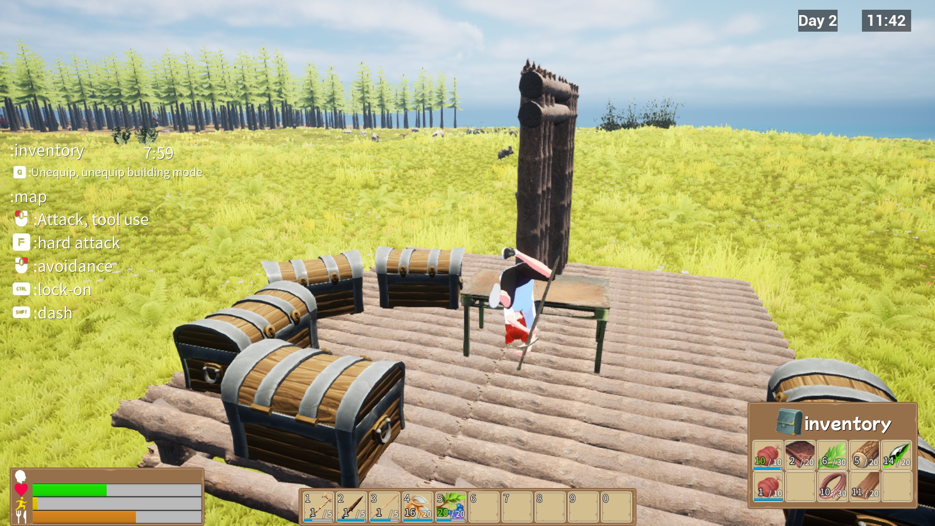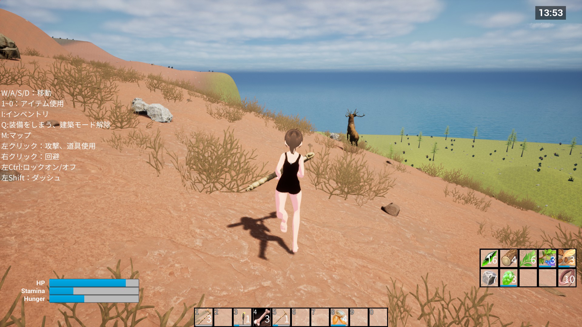 When I woke up, I found myself on an uninhabited island. And I had nothing with me! Anyway, the first priority is to find food to avoid starvation. At night, mysterious creatures attack, so I need to craft equipment and build a base to defend myself! In the end, there's a boss waiting for me!