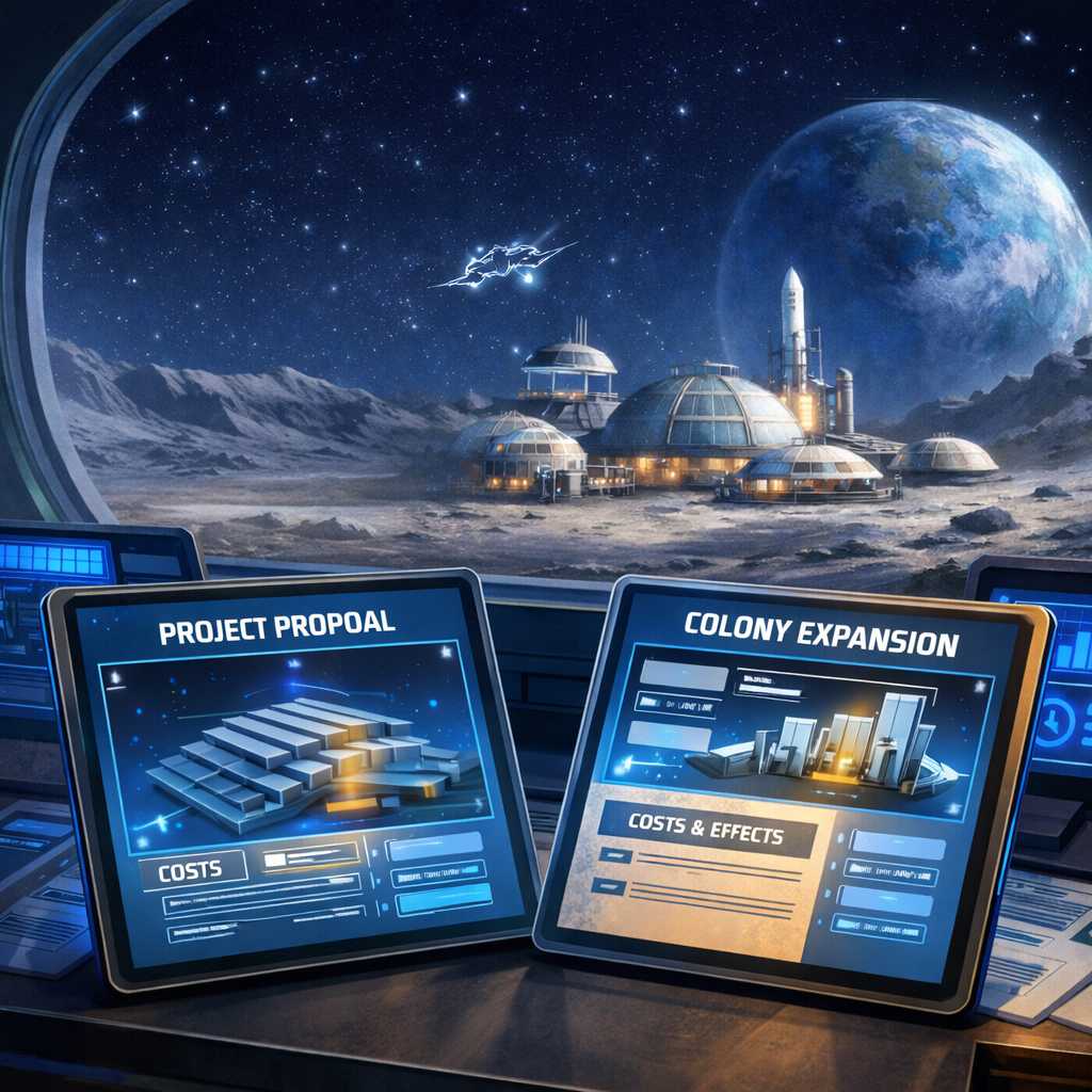 The political drama set in a future that's too close for comfort. Become the first mayor of ARTEMIS: A Pioneering Lunar City. Navigate the future of lunar colonization, choose between independence and cooperation, shape policies for or against AI influence, and tackle interplanetary conspiracies.